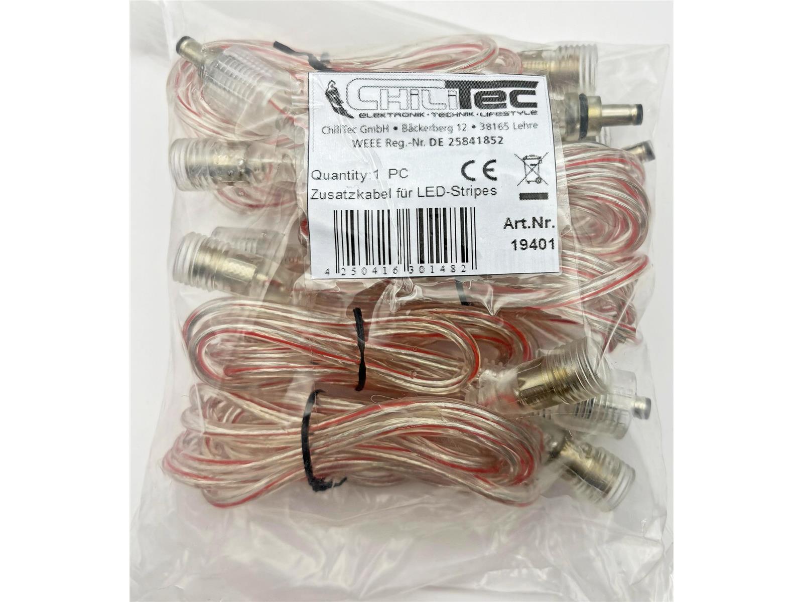 Ist bei Ihnen die Steckdose etwas weiter entfernt zum LED-Stripe? Wollen Sie die Stromzuführung zum Stripe dezent und versteckt verlegen? Dieses Kabel hilft Ihnen! Verlängerungskabel mit 5,5/2,1mm Koax-Stecker auf Kupplung.