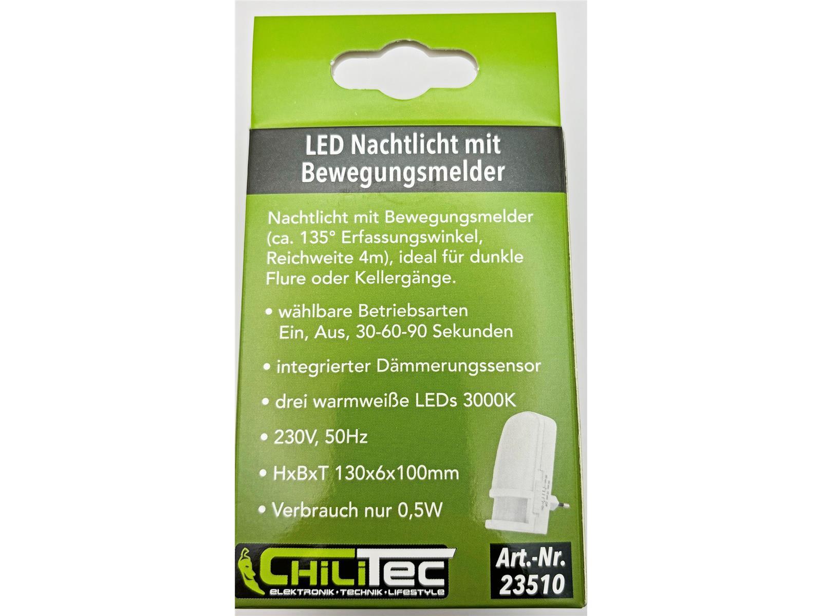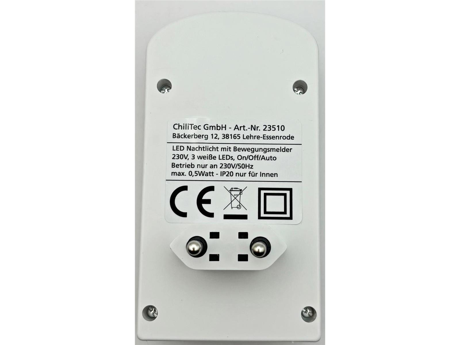 Produktinformationen "LED Nachtlicht mit Bewegungsmelder 230V, 3 weiße LEDs, On/Off/Auto"