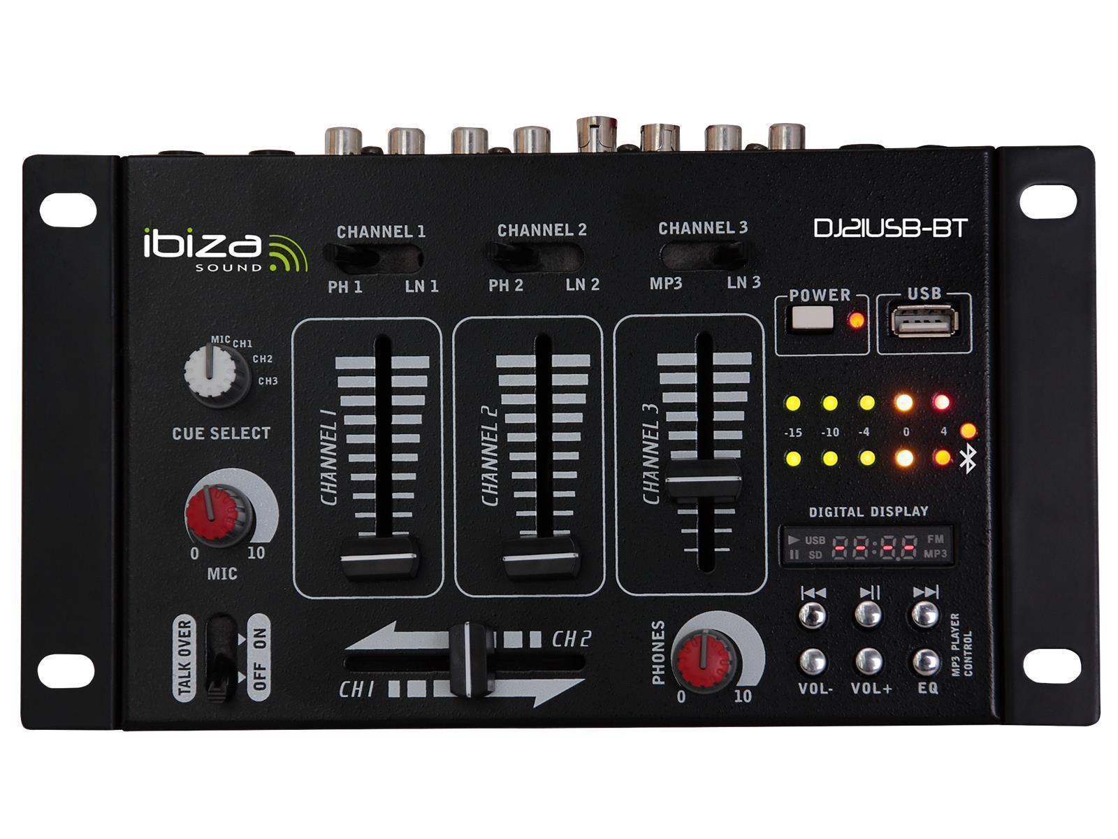 Produktinformationen "4-Kanal Mischpult IBIZA ''DJ21USB-BT'' Bluetooth, USB, 7 Eingänge"