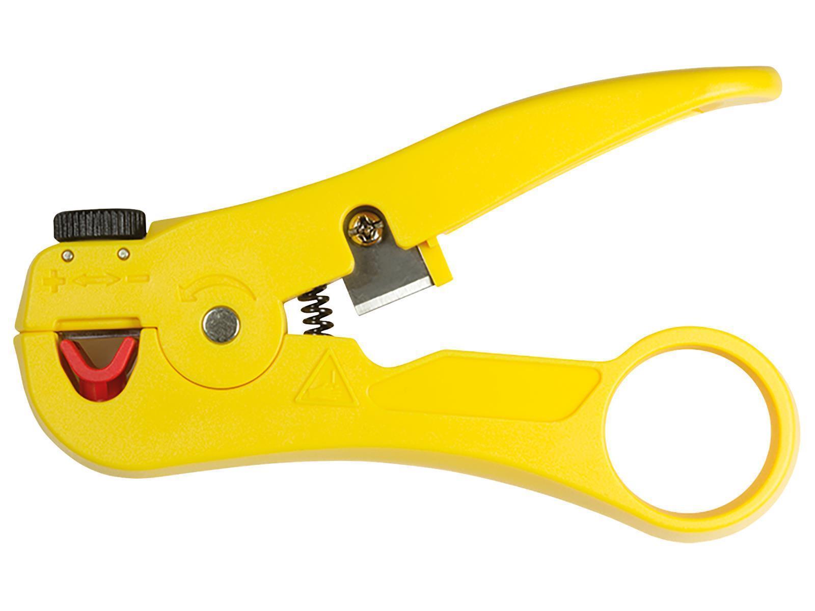 • Abisolierer für Netzwerk- und Datenkabel • Kabeldurchmesser: 3,5-9 mm • Mit Einstellknopf für Durchmesser • Material: ABS, Klinge SK5 • Farbe: Gelb
