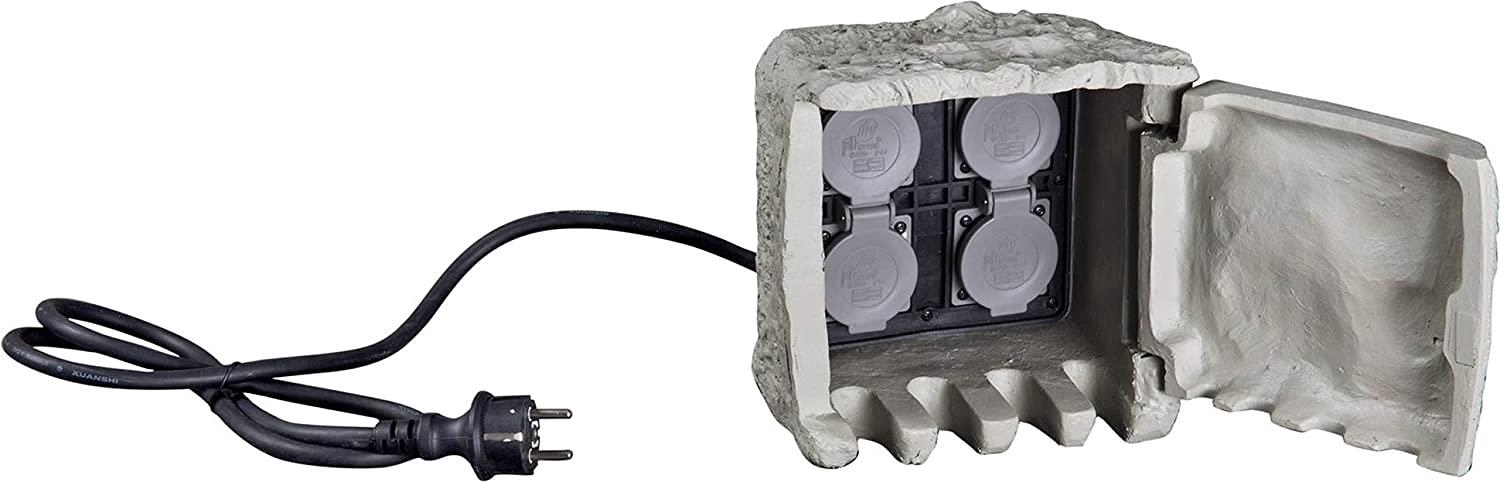 Produktinformationen "Außensteckdose 4-Fach, IP44, stein optik, 190x180x200mm, 3680W, 16A"