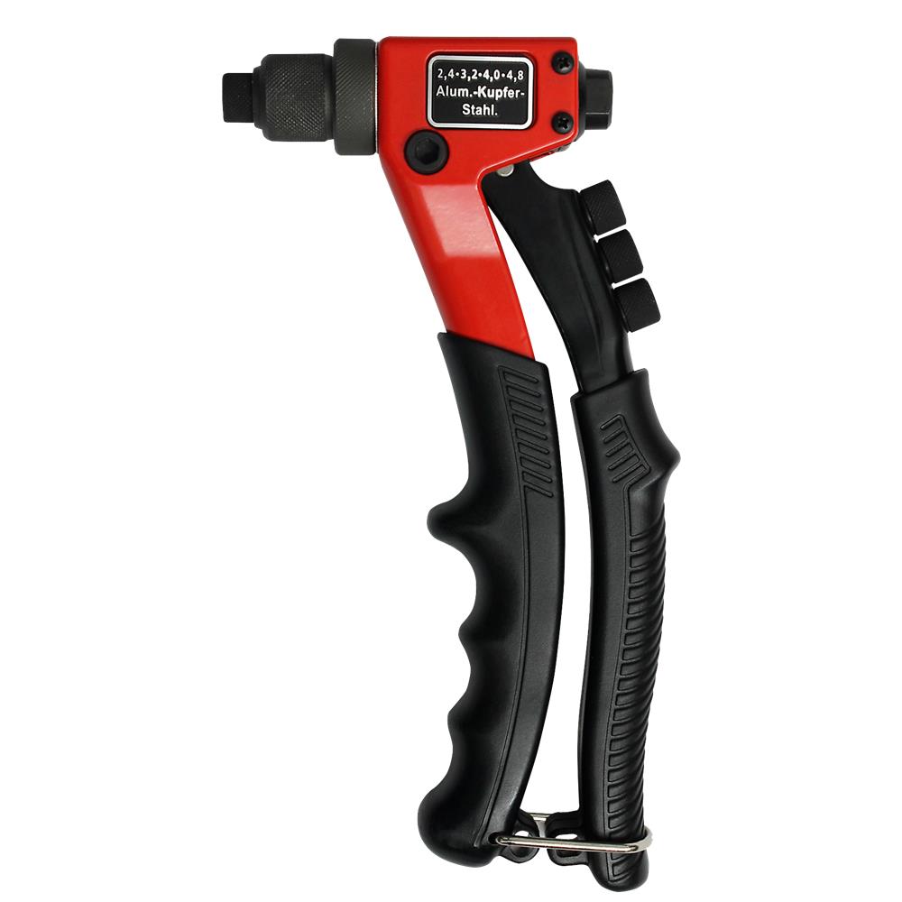 • Mit vier Mundstücken: 2,4 / 3,2 / 4,0 / 4,8 mm • Für Blindnieten aus Stahl, Kupfer oder Aluminium • Kompakte Ausführung - Gesamtlänge: 200 mm • Mit ergonomischer Handschutzisolierung