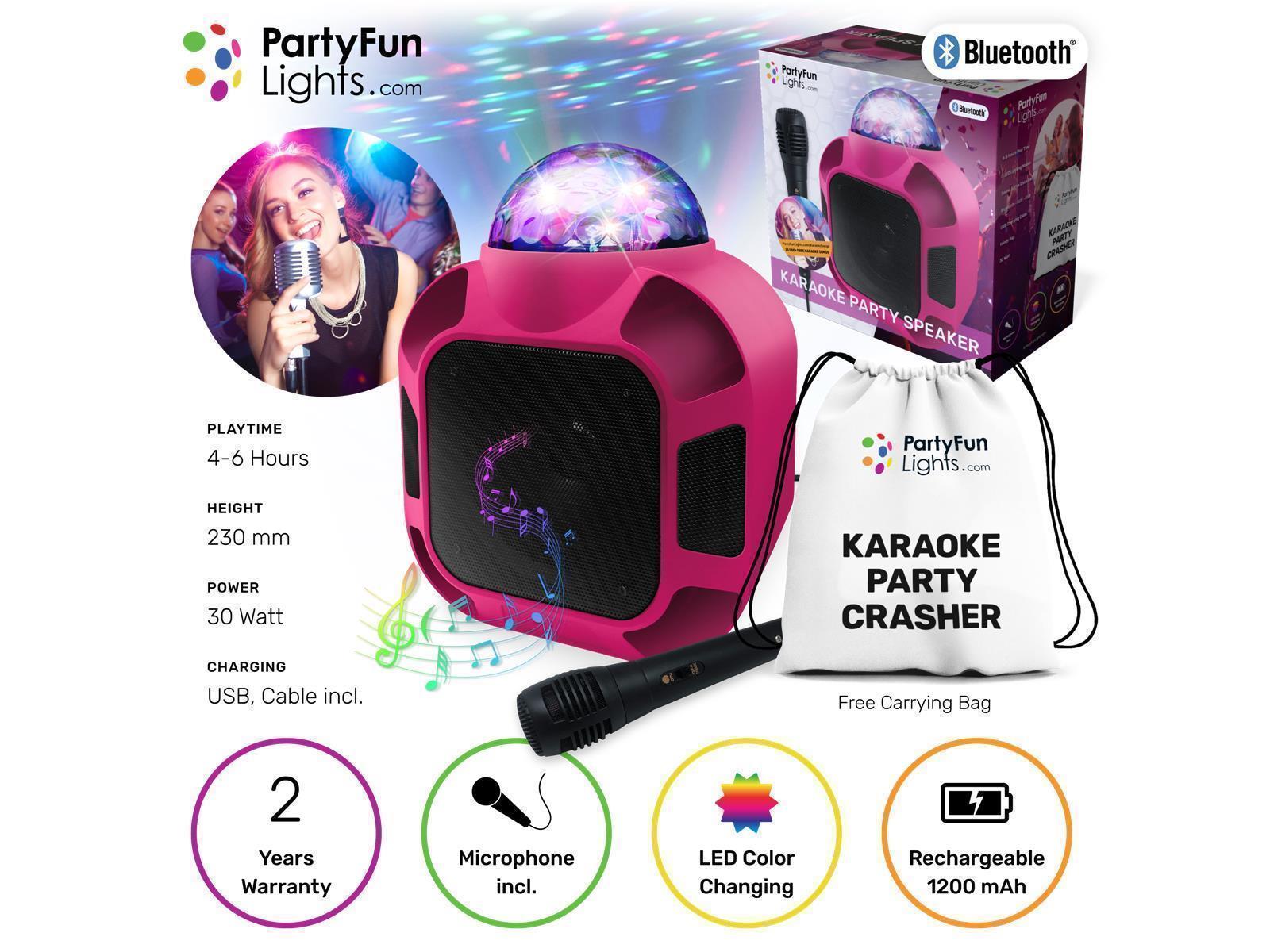 Produktinformationen "Bluetooth Karaoke- Lautsprecher, mit Mikrofon,12000mAh Akku, Mini USB, AUX, Pink"