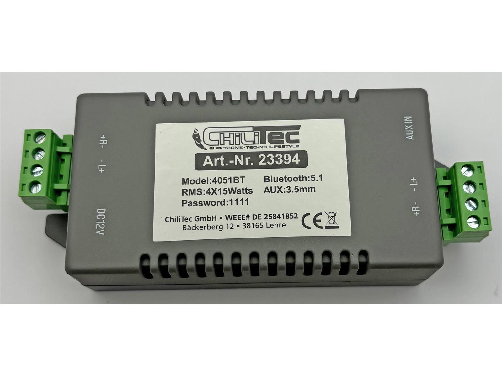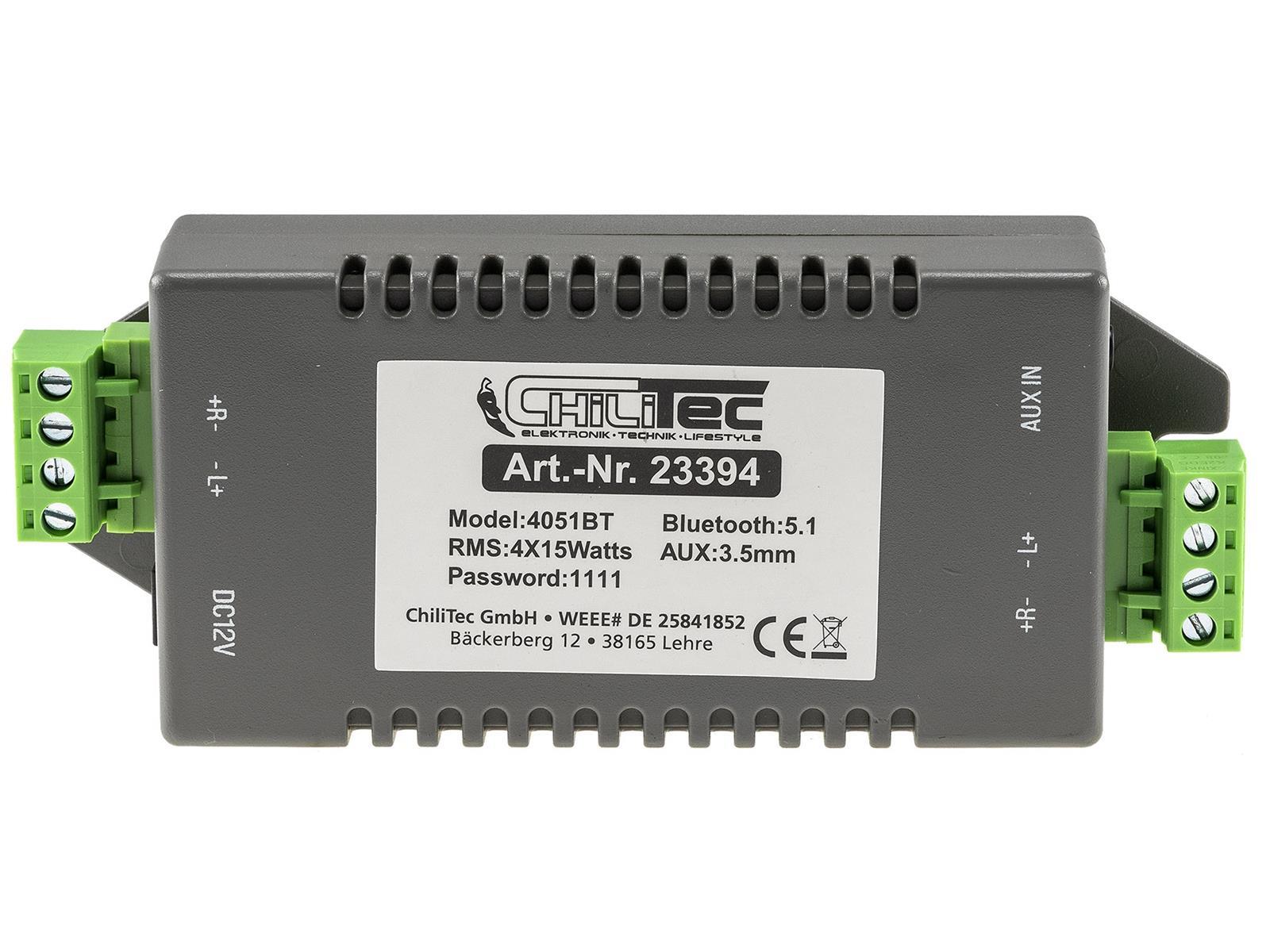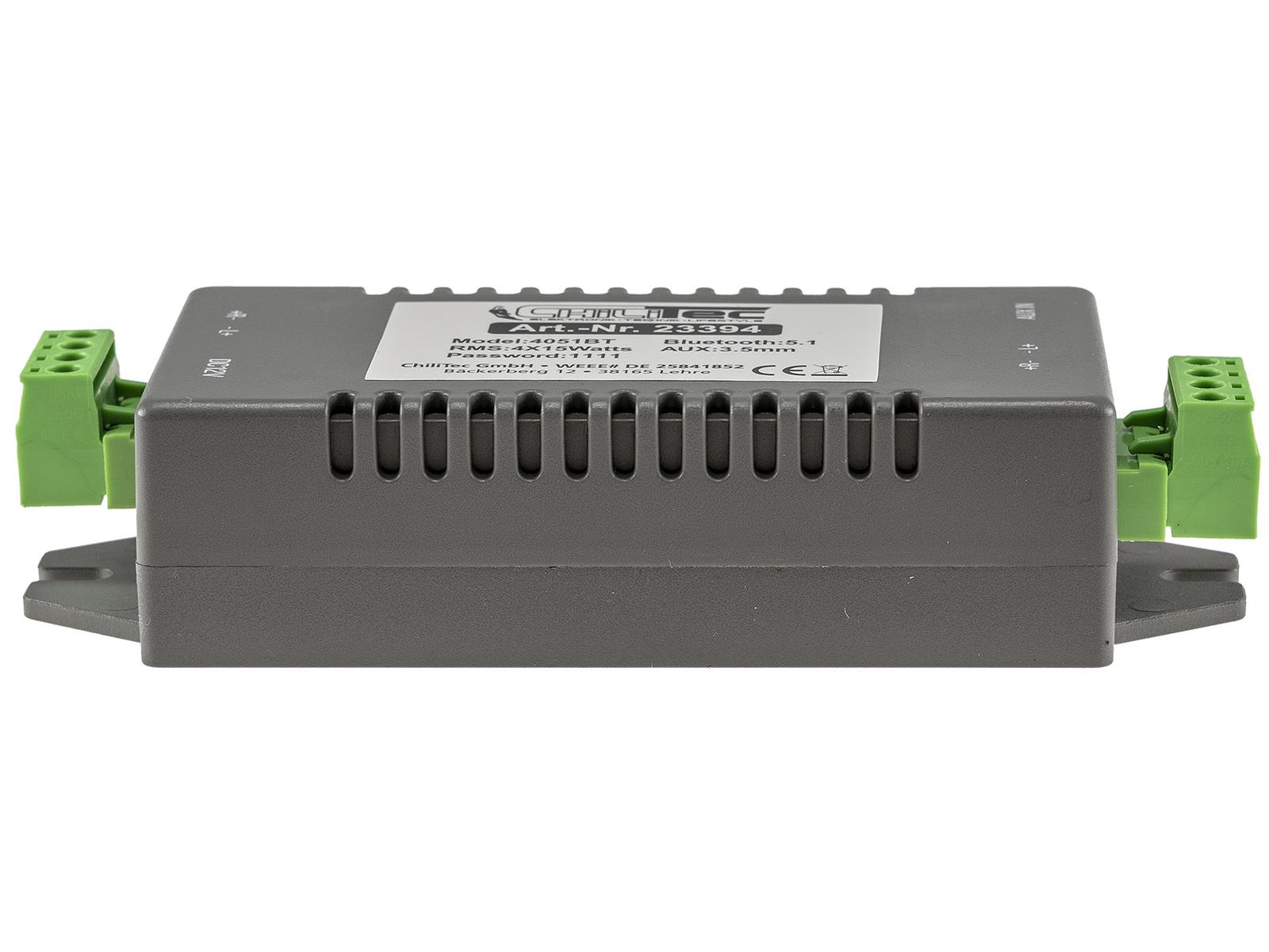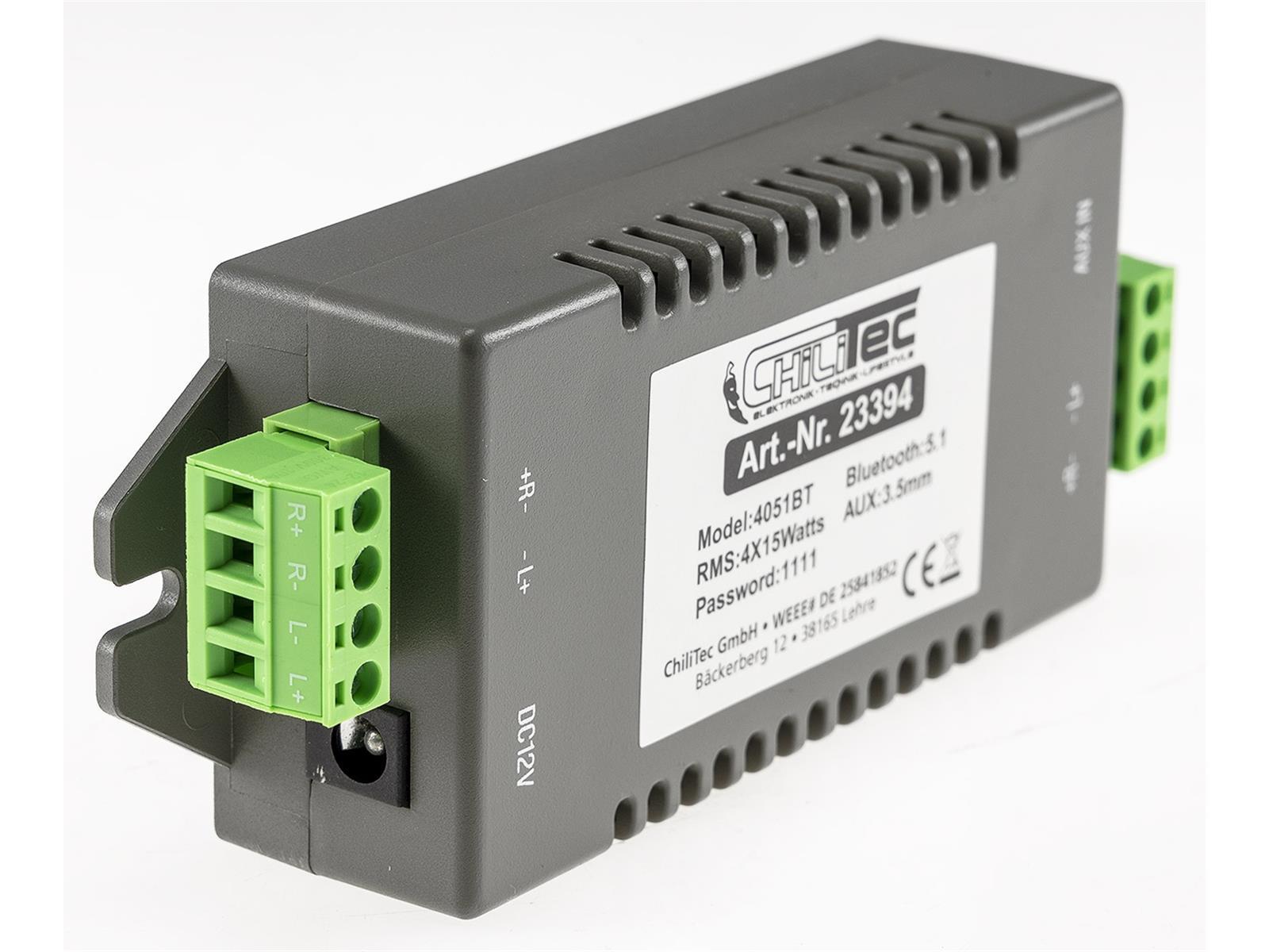 Produktinformationen "Bluetooth Receiver m. 4-Kanal Verstärker 4/8Ohm, 4x15W, 12V/4A, 3,5mm AUX-In"
