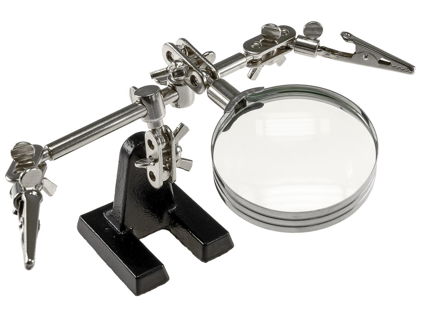 Produktinformationen "Dritte Hand mit Lupe und KlemmenLöthilfe mit Gussfuss, 2,5x Vergrößerung"