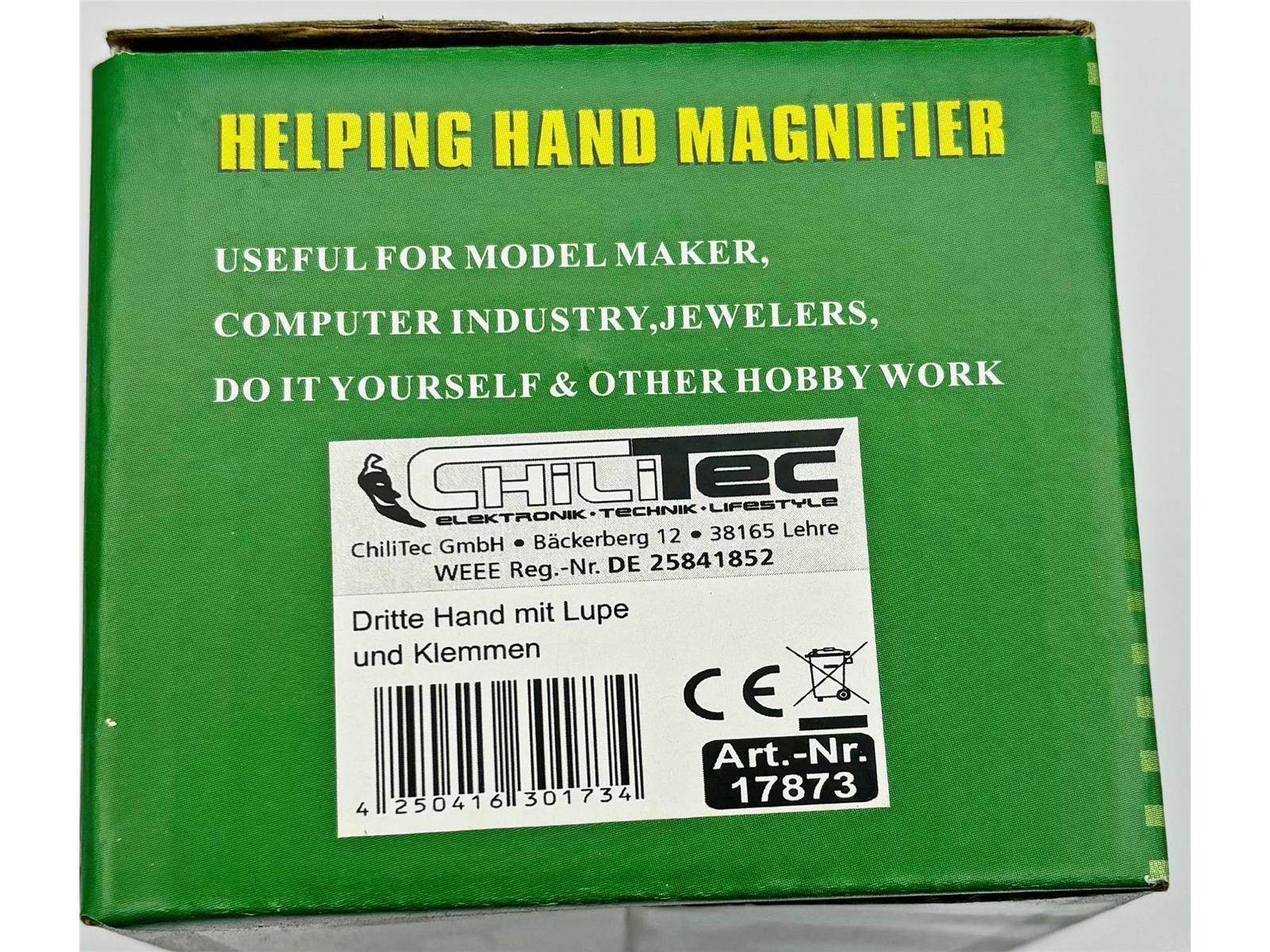Keine Hand frei? Dann muss eine Dritte her! Helfende Hand mit Lupe und zwei beweglichen Greifzangen in jede Richtung verstellbar, Schwerer Gussfuß, Gewicht 0,4kg,