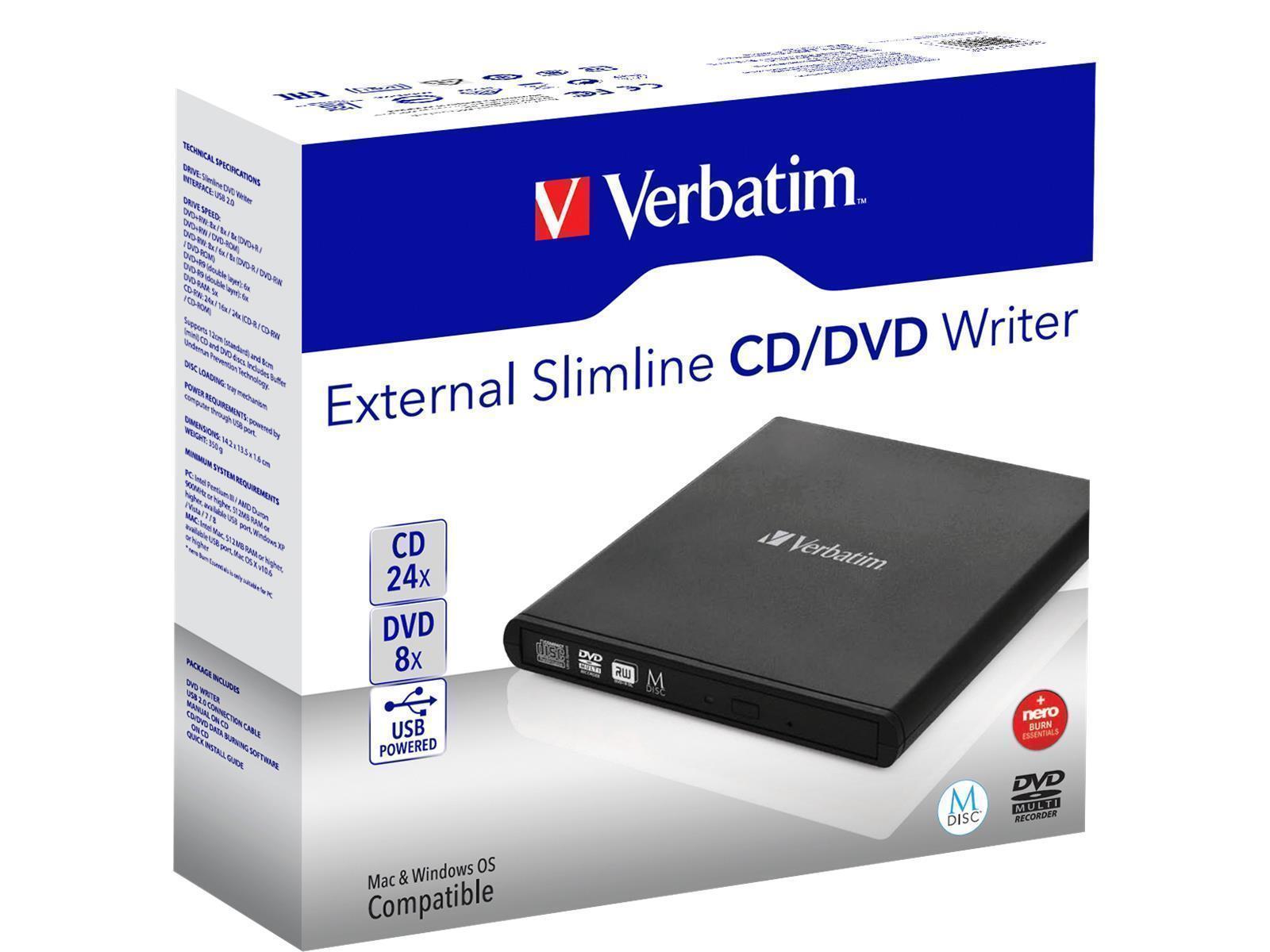 Produktinformationen "Externer CD/DVD Recorder/ Brenner Verbatim, Slimline, USB 2.0"