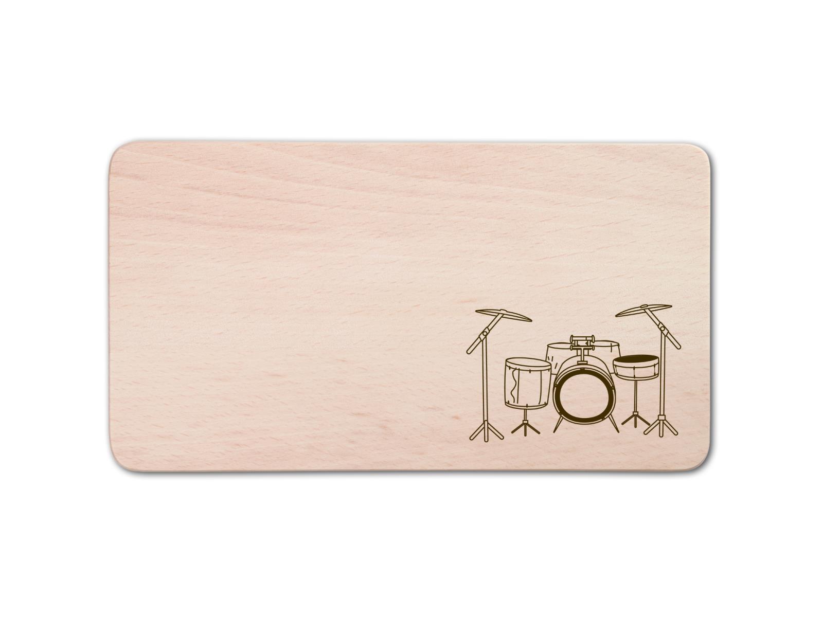 Produktinformationen "Frühstücksbrett, rechteckig, mit Motiv Schlagzeug" aus Holz 22 cm""