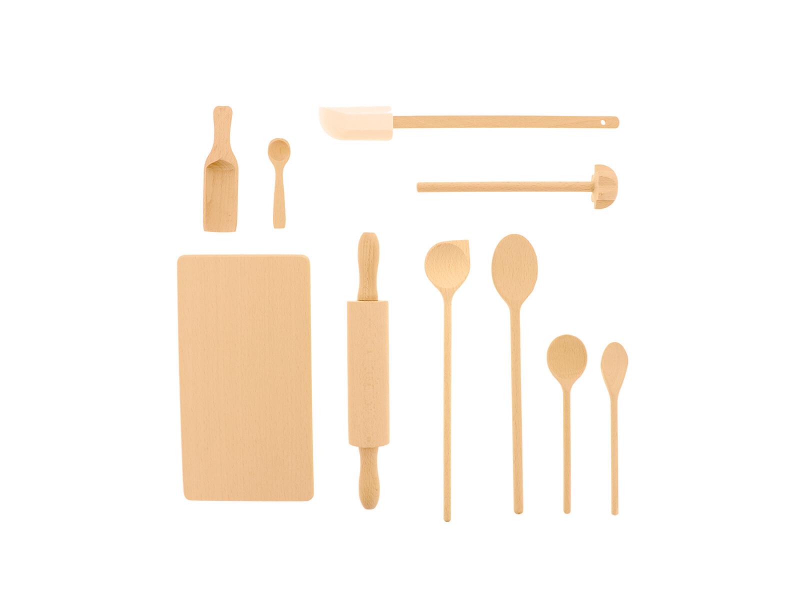 ROBUST LANGLEBIGDas Backset für Kindbesteht aus Frühstücksbrett, Kochlöffel, Senf- oder Konfitürelöffel, Kochlöffel, spitz, Kochlöffel, rund, Quirl, Schäufelchen, Teigschaber, Dosierlöffel und Teigrolle ohne Achse, Alle Holzprodukte werden aus stabiler und langlebiger Buche in europäischen Familienbetrieben hergestelltKOMPLETTES SET: Das Kaufladen Backset enthält alle wichtigen Kochutensilien, die Ihr Kind zum Backen von Muffins, Keksen oder Kuchen benötigt, Dank der kleinen Größe die speziell für Kinder gefertigt wurde, lässt sich mit dem Kaufladen Zubehör kinderleicht Bäcker spielen GESCHENKIDEE FüR KINDER: Ob als Belohnung oder Geburtstagsgeschenk- ihr Kind wird sich über das Backset für die Spielküche sicher freuen, Das Zubehör kann für jede Kinderküche verwendet werden und macht kleine Bäcker zu echten Profis PERFEKTER PARTYSPASS: Das Geschirr für Spielküchen sorgt für Kinder jeden Alters auf Kindergeburtstagen für jede Menge Spaß, Gemeinsam kann mit Freunden versucht werden, die eigene Torte in der Kinderküche nach zu backen SICHERE MATERIALEN: Gerade im Umgang mit Kindern, die alles gerne in den Mund nehmen, ist es wichtig auf hygienische Spielsachen zu achten, Mit unserem natürlichen und unbehandeltem Kinder Backset sind Ihre Kleinen vor Bakterien und Keimen sicher geschützt Kinderleicht backen mit dem passenden Zubehör Dieses Kinder-Kochset wurde speziell für unsere kleinen Bäcker zusammengestellt und fördert kreatives und fantasievolles Spielen, Auf Kindergeburtstagen und Partys können mit dem Zubehör kleine Köche ihr Backtalent in der Kinderküche unter Beweis stellen, Das Set ist eine schöne Geschenkidee für alle kleinen Küchenchefs, die für ihre Spielküche das passende Backzubehör suchenMit dem Backset erlernen Ihre Kinder spielend die Küchenutensilien kennen und haben dabei gleichzeitig Spaß mit ihrem eigenen Kinderküchenzubehör