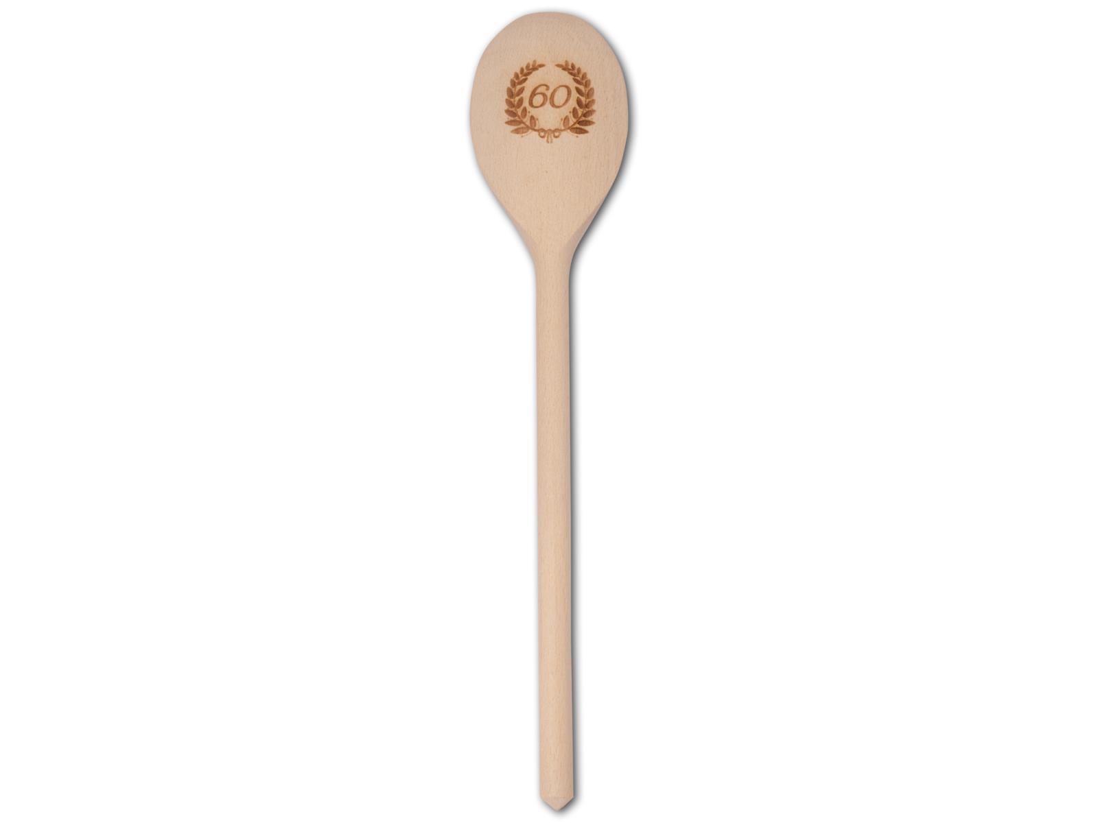Produktinformationen "Kochlöffel, oval, mit Motiv 60, aus Holz 30 cm"