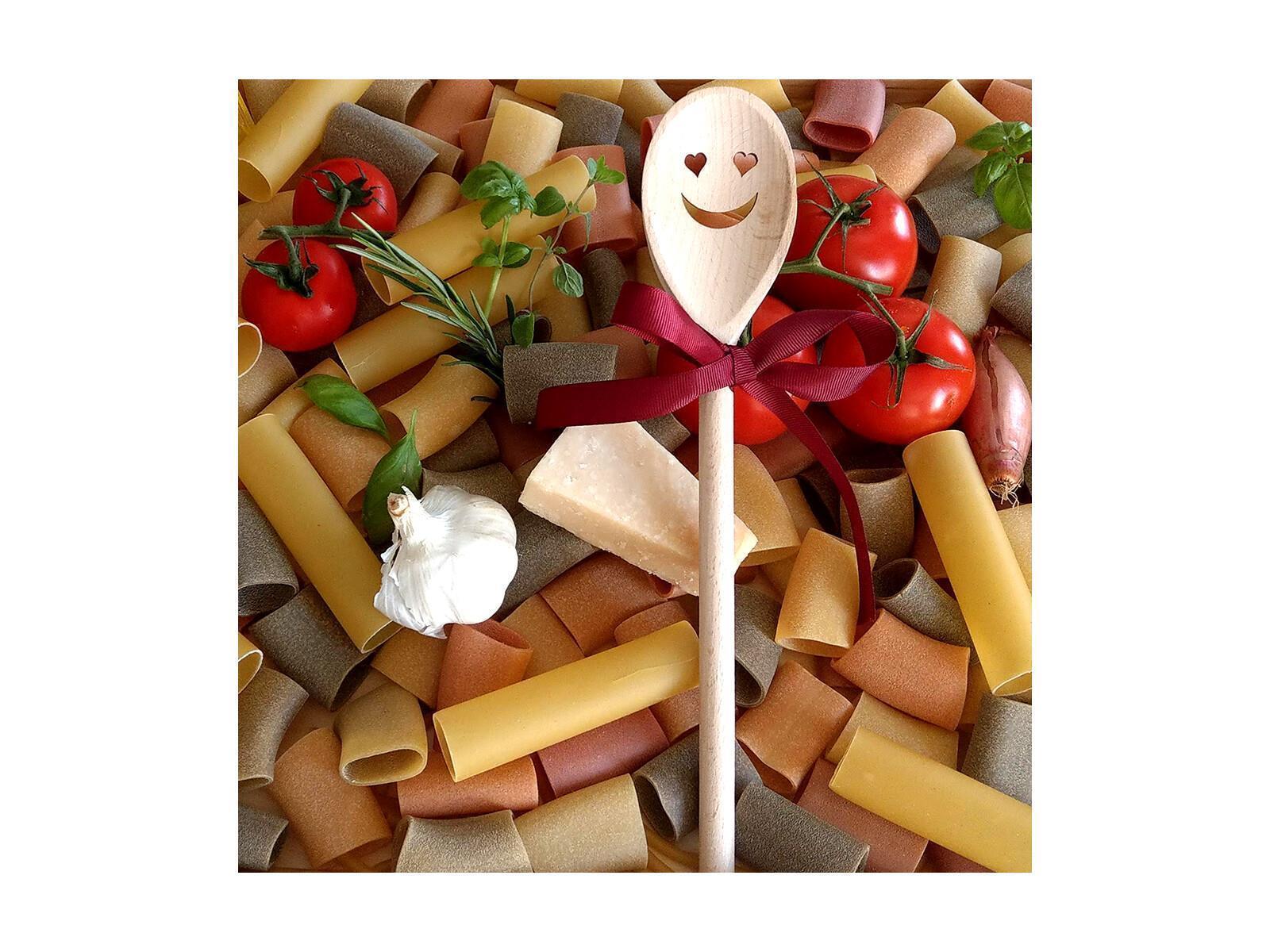 Produktinformationen "Kochlöffel, oval, mit Motiv Gesicht mit Herzaugen, aus Holz 30 cm"