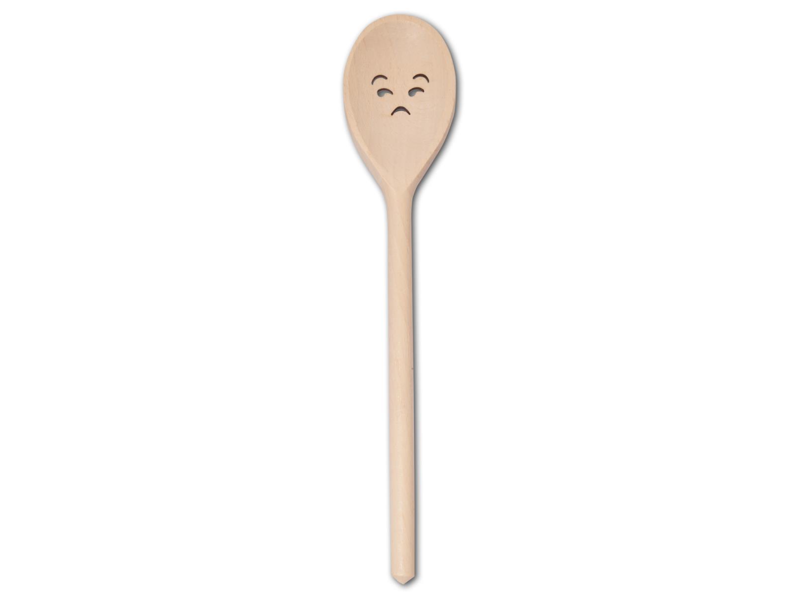 Produktinformationen "Kochlöffel, oval, mit Motiv Gesicht mit gelangweiltem Blick, aus Holz 30 cm"