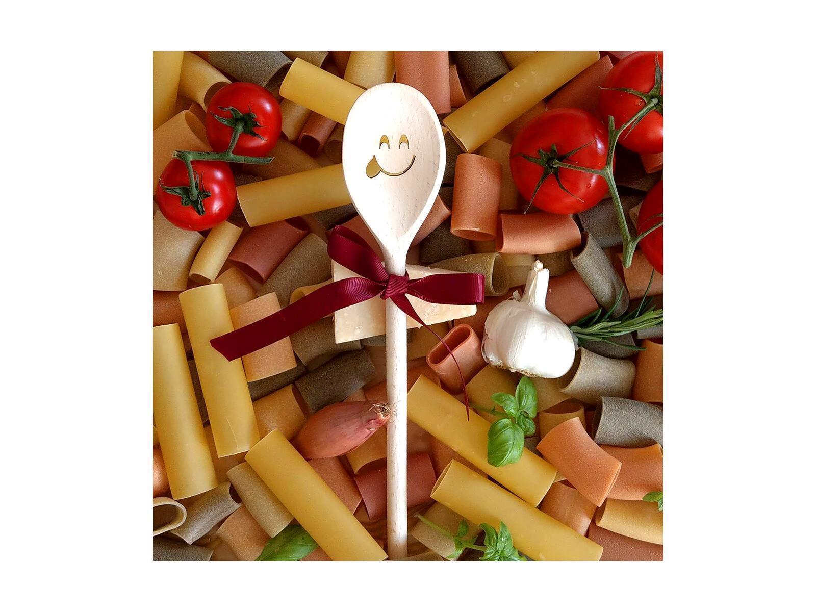 Produktinformationen "Kochlöffel, oval, mit Motiv Gesicht mit rausgestreckter Zunge, aus Holz 30 cm"