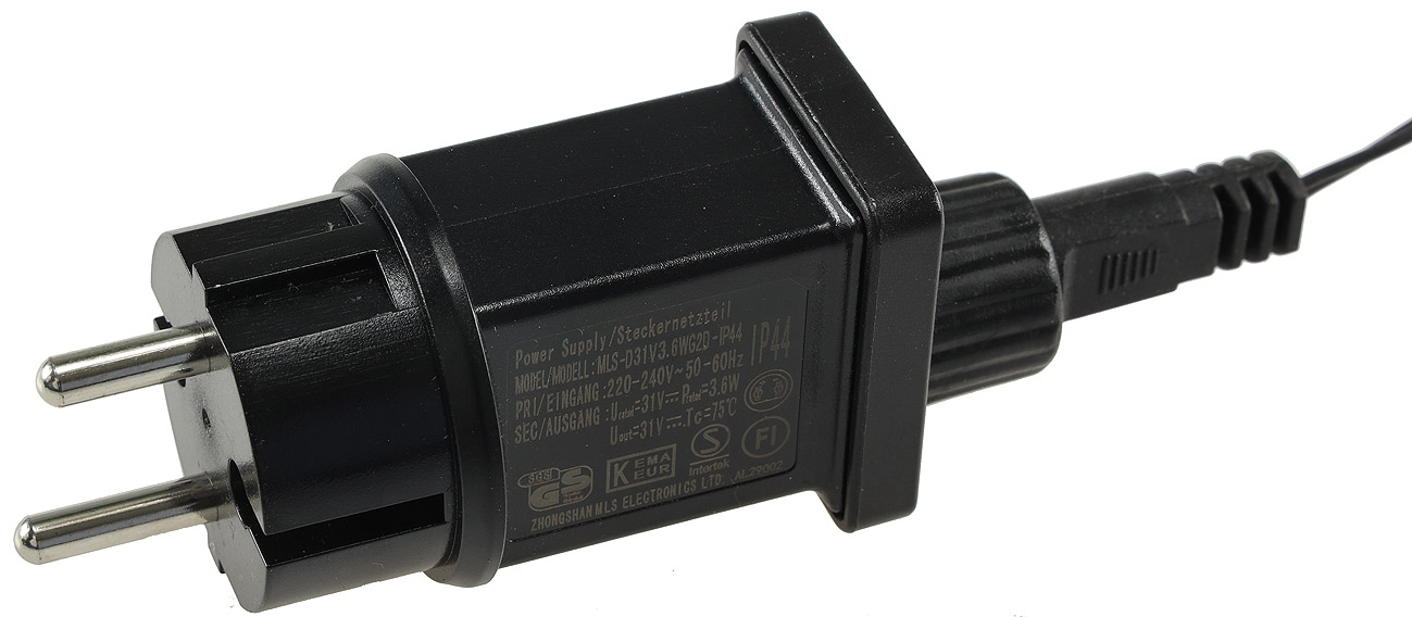 • Stromversorgung über IP44 Steckernetzteil 31V DC/116mA