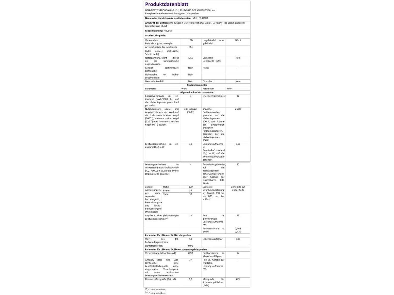 | Lampensockel: | E14 - 230 V |
