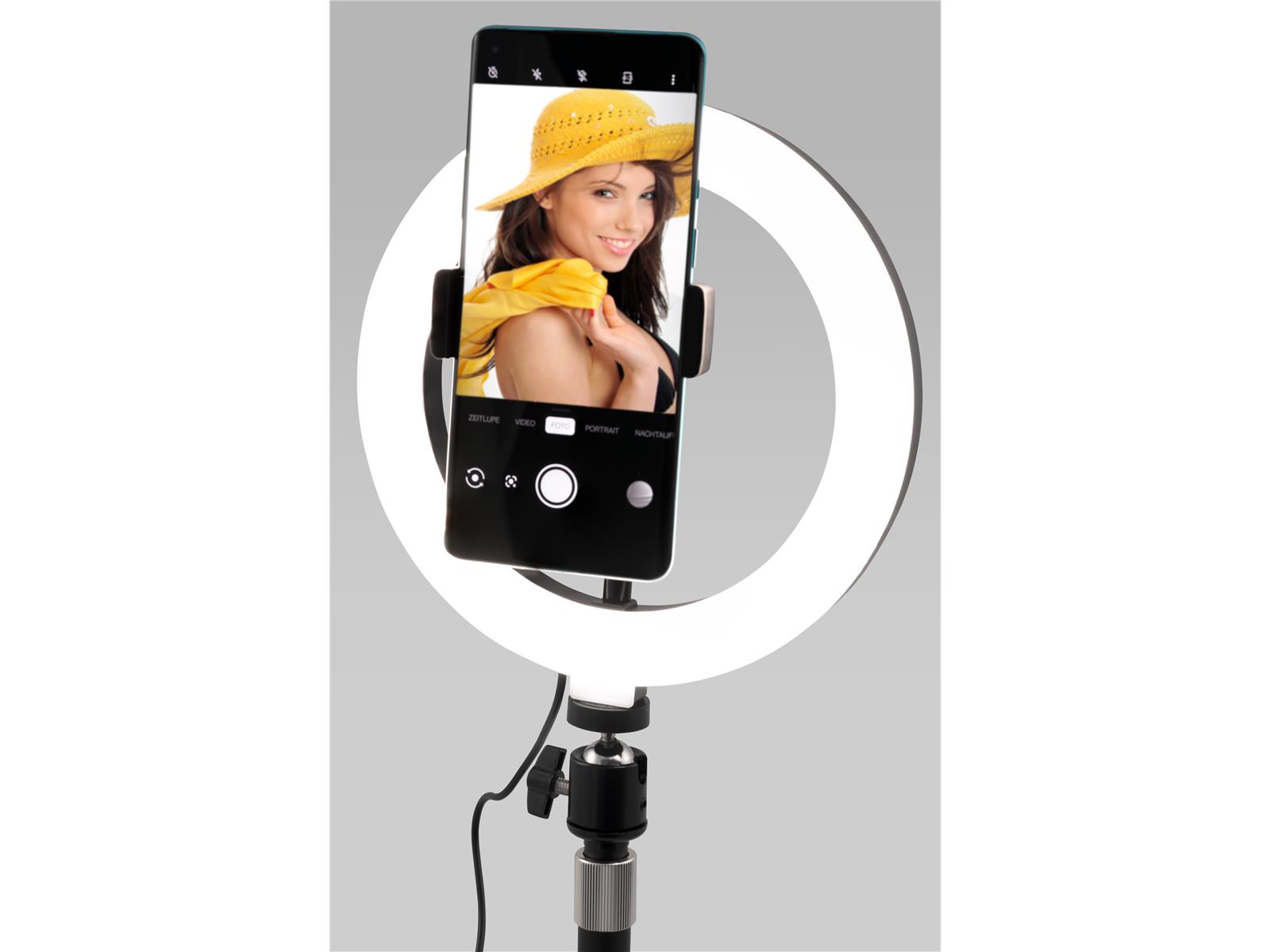 Produzieren Sie professionelle Videos und schießen Sie perfekte Beauty-Fotos. Dank Ihres neuen LED-Lichtrings richten Sie die Beleuchtung genau so aus, wie Sie es brauchen. So heben Sie z.B. Ihre Live-Streams und Porträt-Fotos auf ein ganz neues Niveau. Profitieren Sie von optimaler Beleuchtung für makelloses Make-up, Kosmetik, zum Frisieren u.v.m. Das Ringlicht leuchtet Ihr Gesicht dabei frontal und absolut gleichmäßig aus.