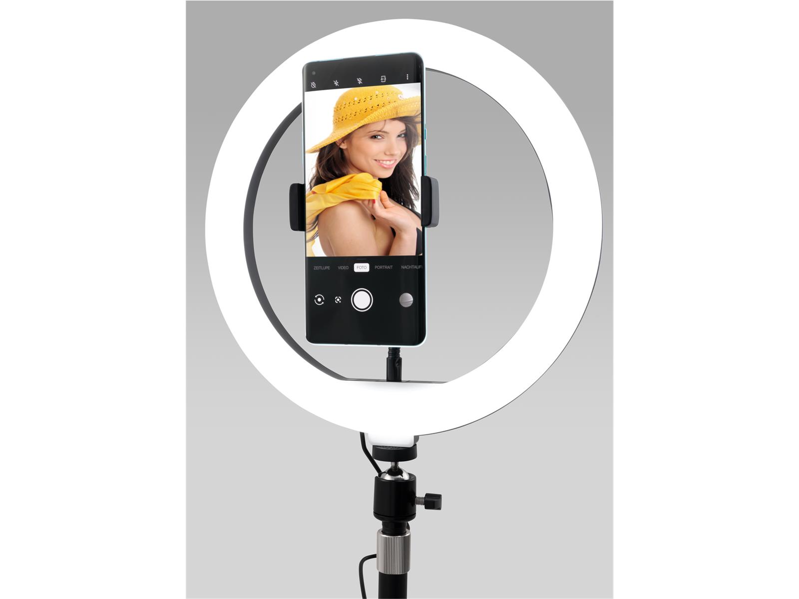 Produktinformationen "LED Ringleuchte für Smartphone, Ø20 cm, 3 Lichtfarben,"