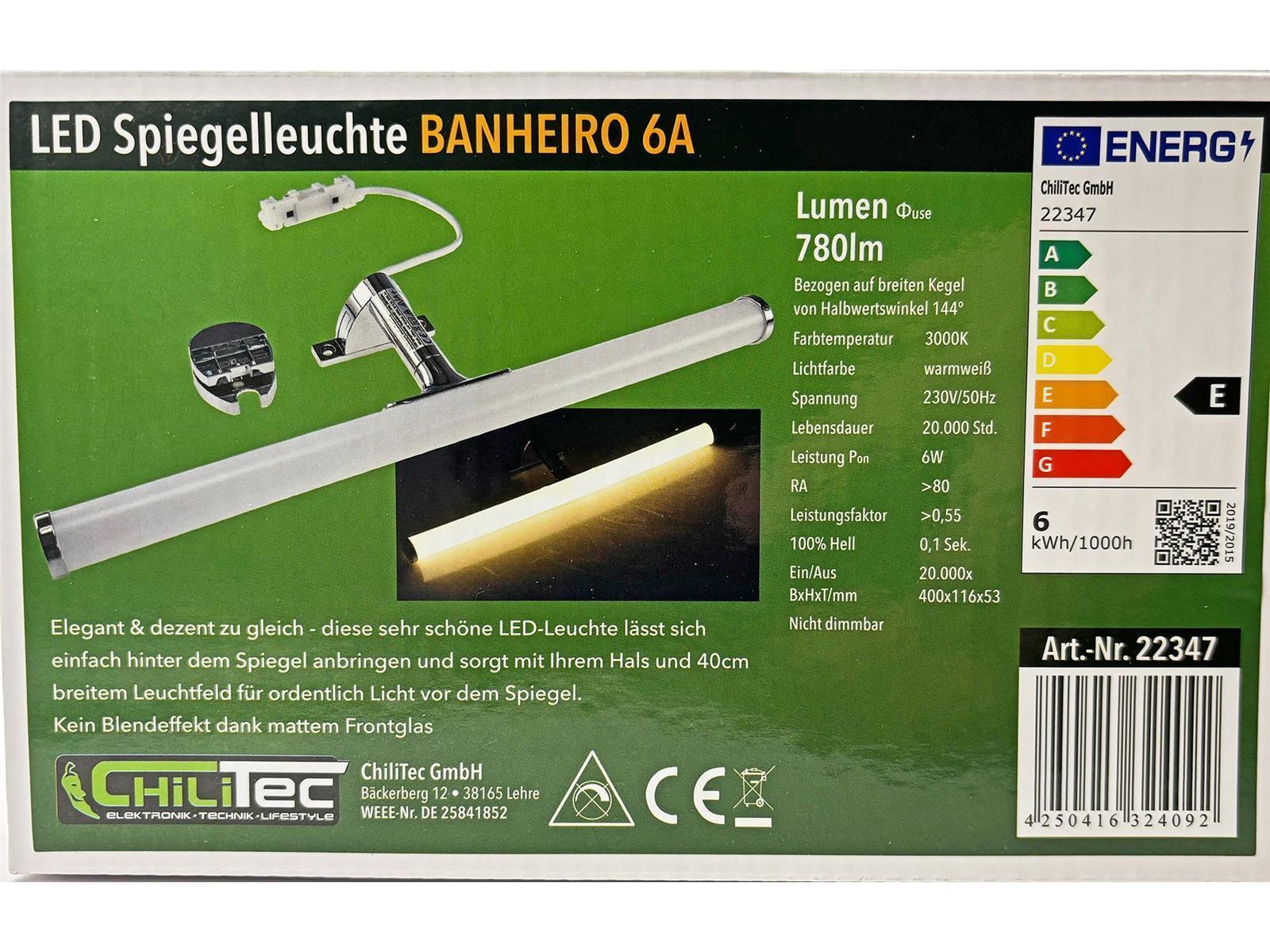Produktinformationen "LED Spiegelleuchte "Banheiro 6A"230V, 6W, 780lm, 40cm, 2900K warmweiß"