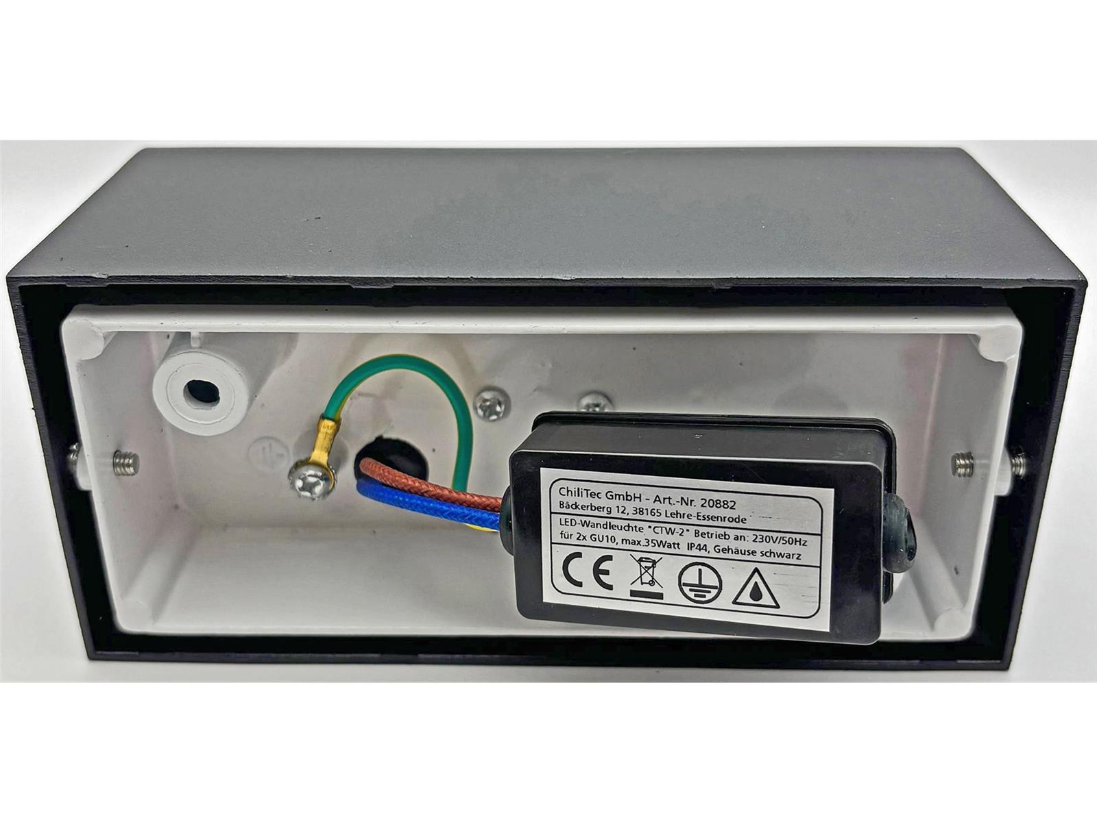 • interne GU10 Fassung für zwei LED Leuchtmittel, Gesamtlänge je max. 58mm