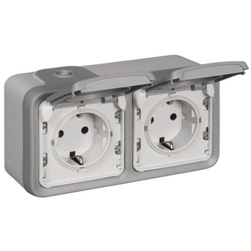 Steckdose (SL) 2-fach waagerecht IP44 Feuchtraum Aufputz Plexo 55 Grau
