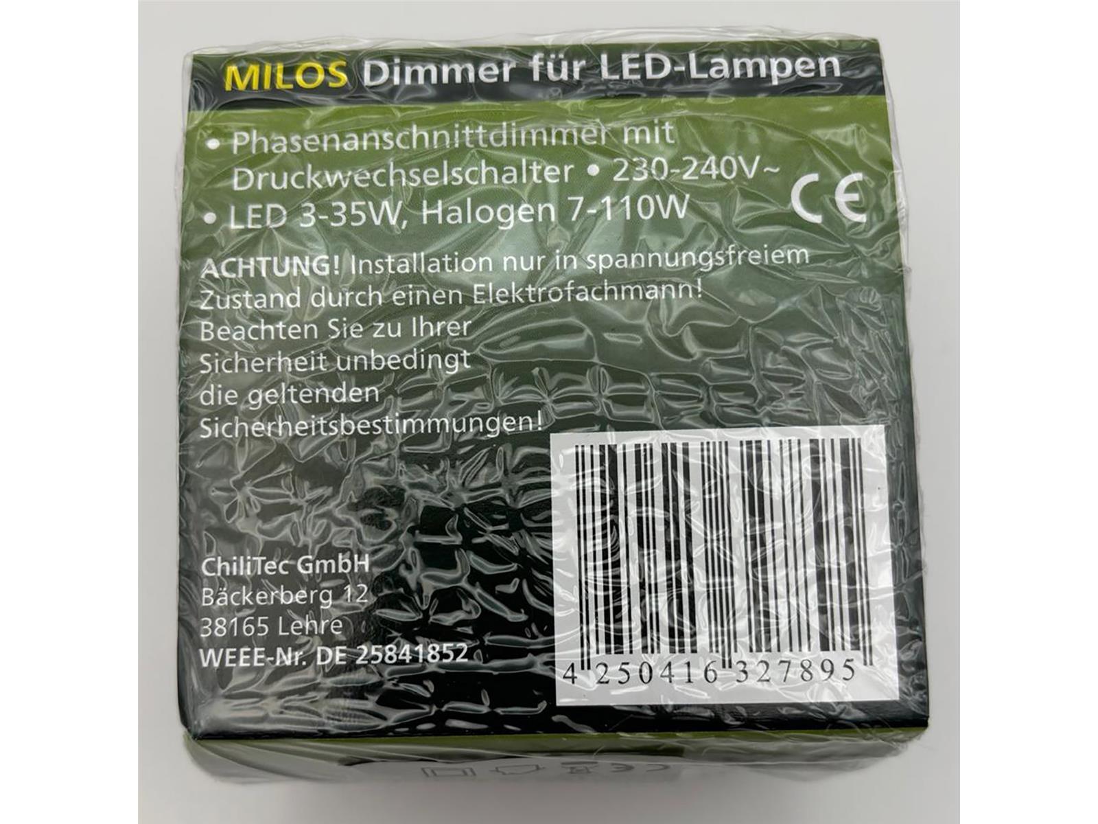 Helligkeitsregelung durch Phasenanschnitt für dimmbare LED-Lampen, inkl. Druck-Schaltfunktion! Die MILOS Serie bietet Ihnen zu attraktiven Preisen ausgereifte Qualität und eine exzellente Optik und Haptik mit matt-weißem Finish.