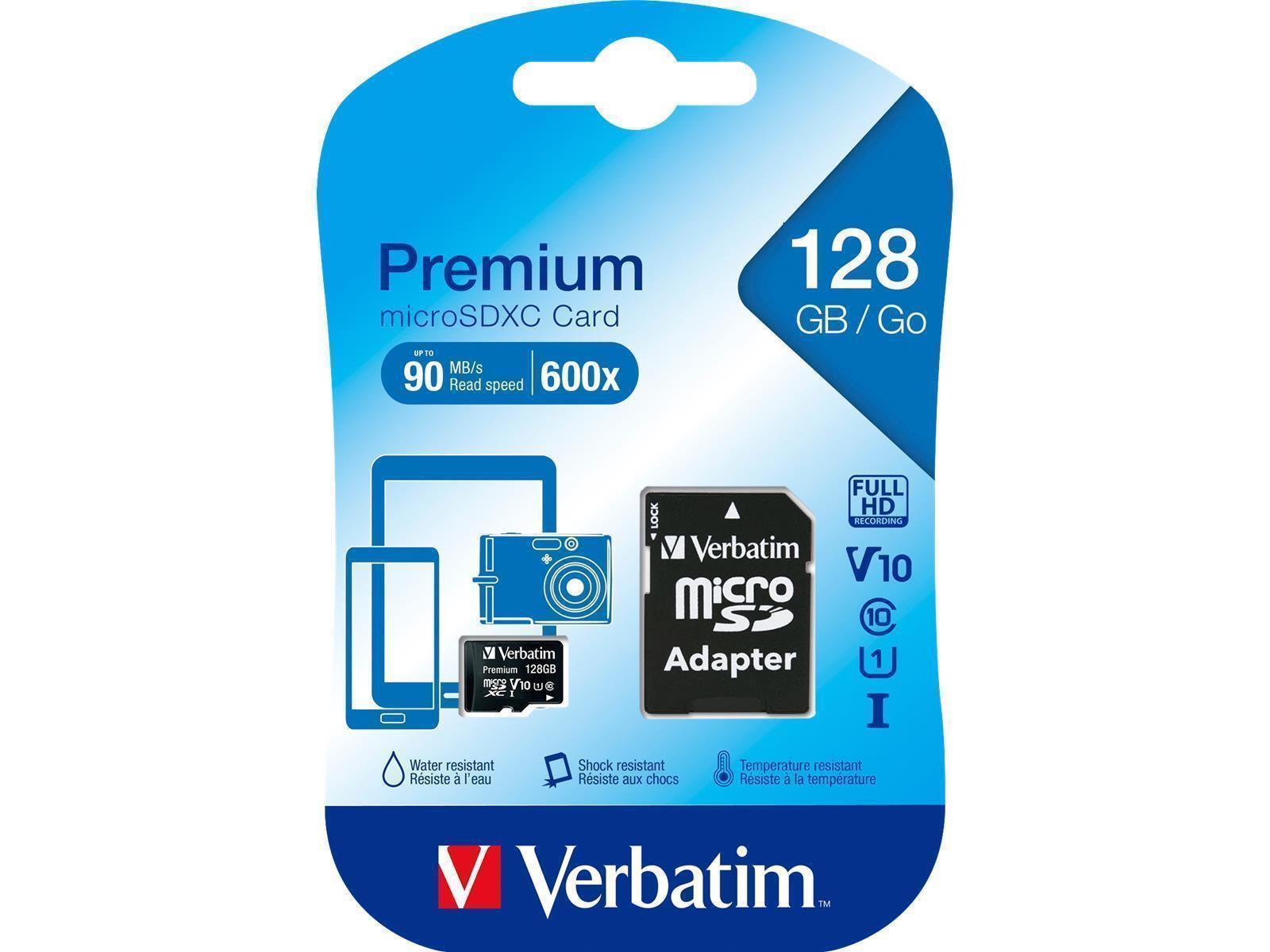 Produktinformationen "Micro SDHC Card Verbatim, 128GB Speicherkapazität, inkl. Adapter, Class 10"