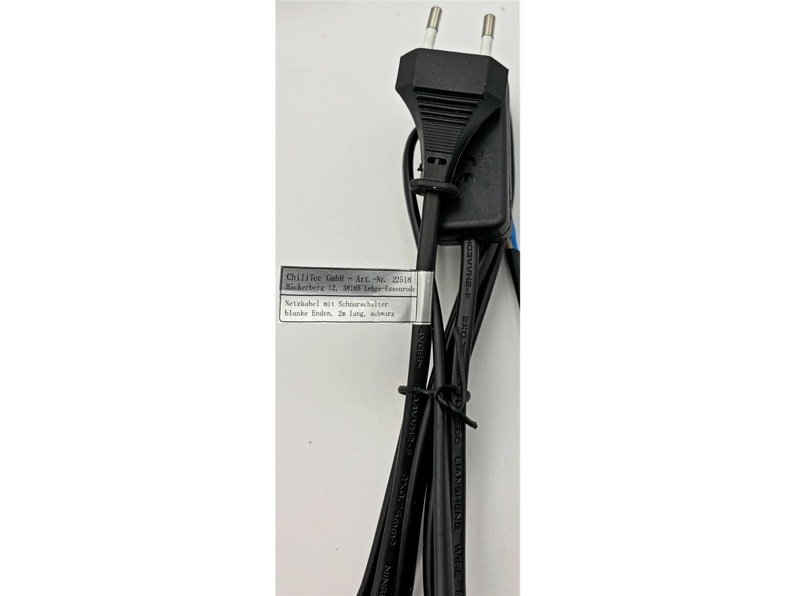 Produktinformationen "Netzkabel mit Schnurschalterblanke Enden, 2m lang, schwarz"