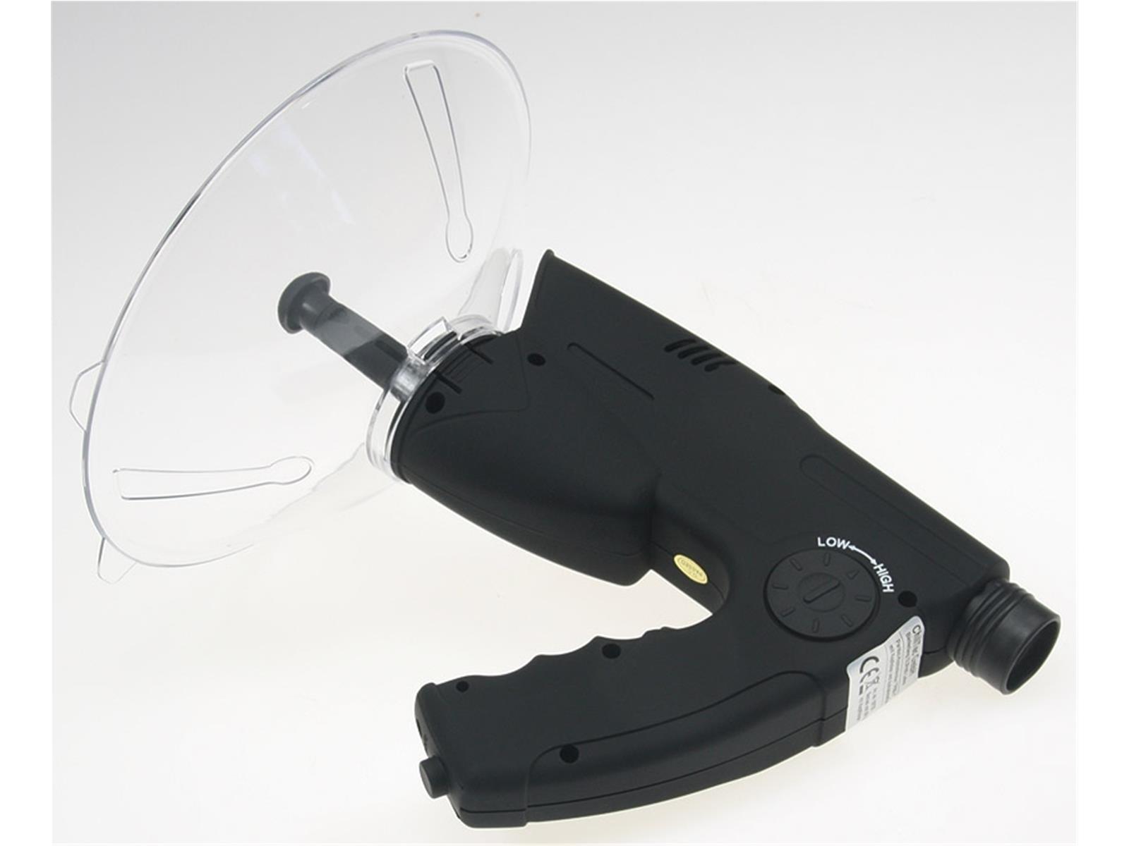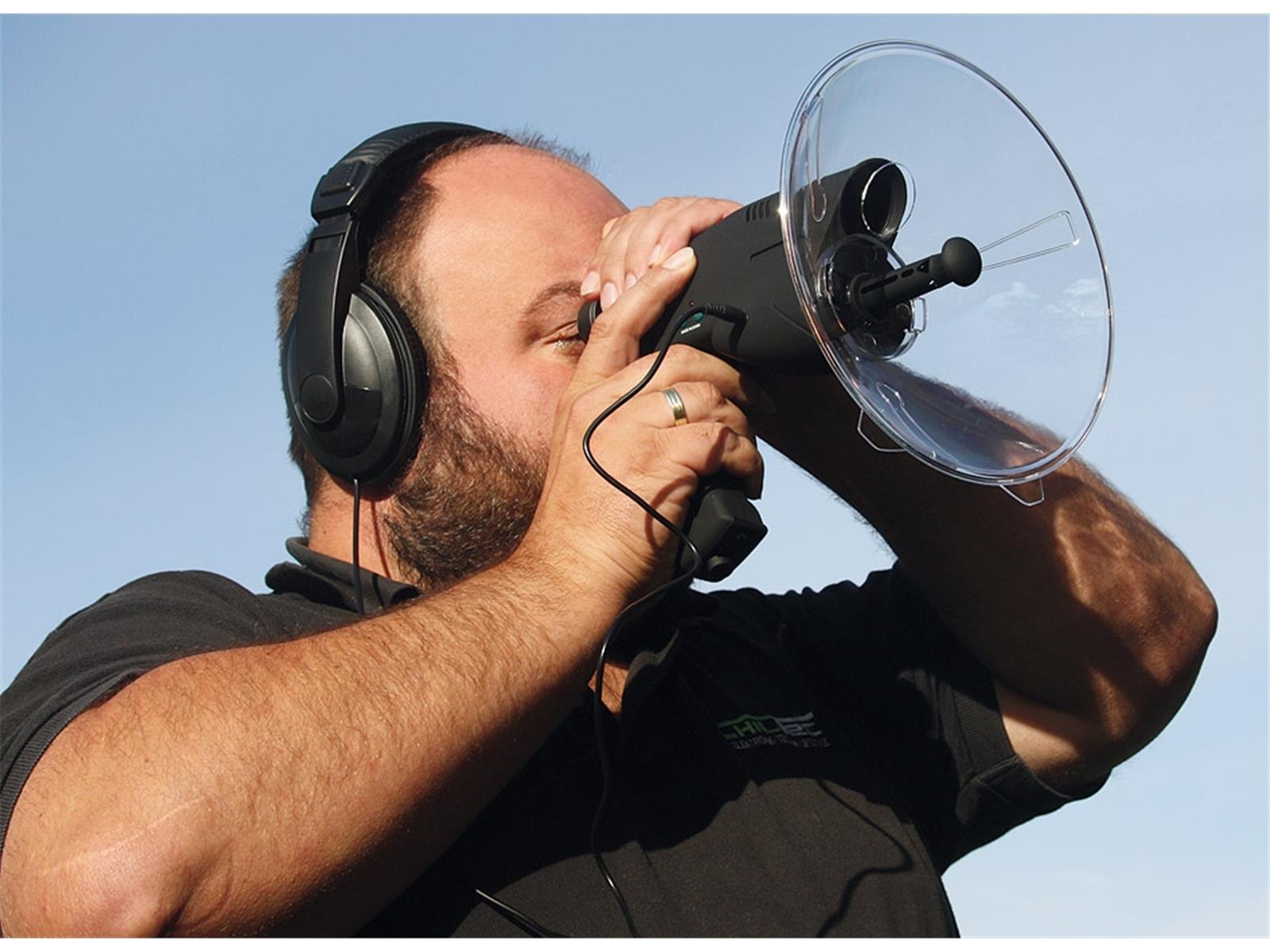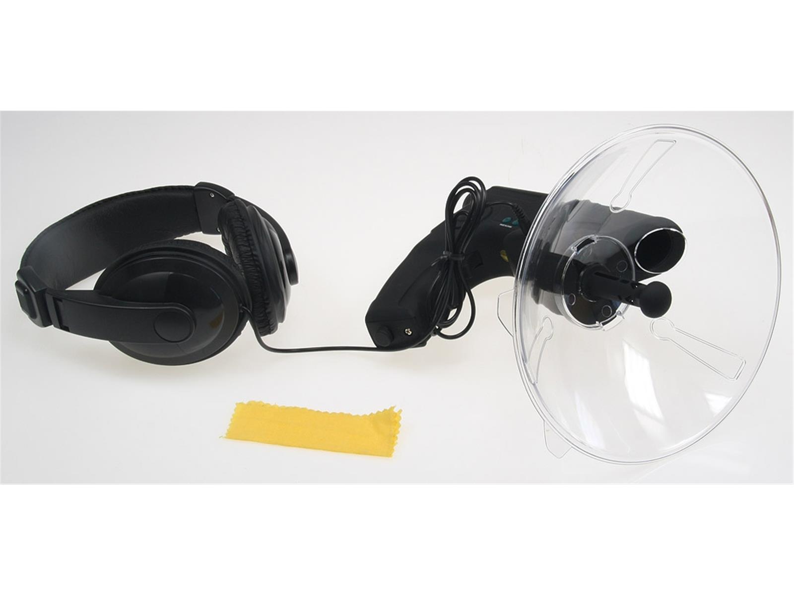 Ideal für Observationen, Tier-Beobachtung und Jagd! Dieser Geräuschverstärker verleiht Ihren Ohren ungeheure Reichweite: Durch eine 37-fache Verstärkung der Lautstärke sowie die präzise Ausrichtung des Parabolspiegels durch optische Visiereinheit können Sie Vogelgesänge, Laute von Wildtieren und Gespräche zwischen Menschen in bis zu 90m Entfernung wahrnehmen! Dank eingebautem Speicher können Sie bis zu 13 Sekunden Geräusche digital aufzeichnen, Die Empfindlichkeit des Richtmikrofons ist stufenlos einstellbar,