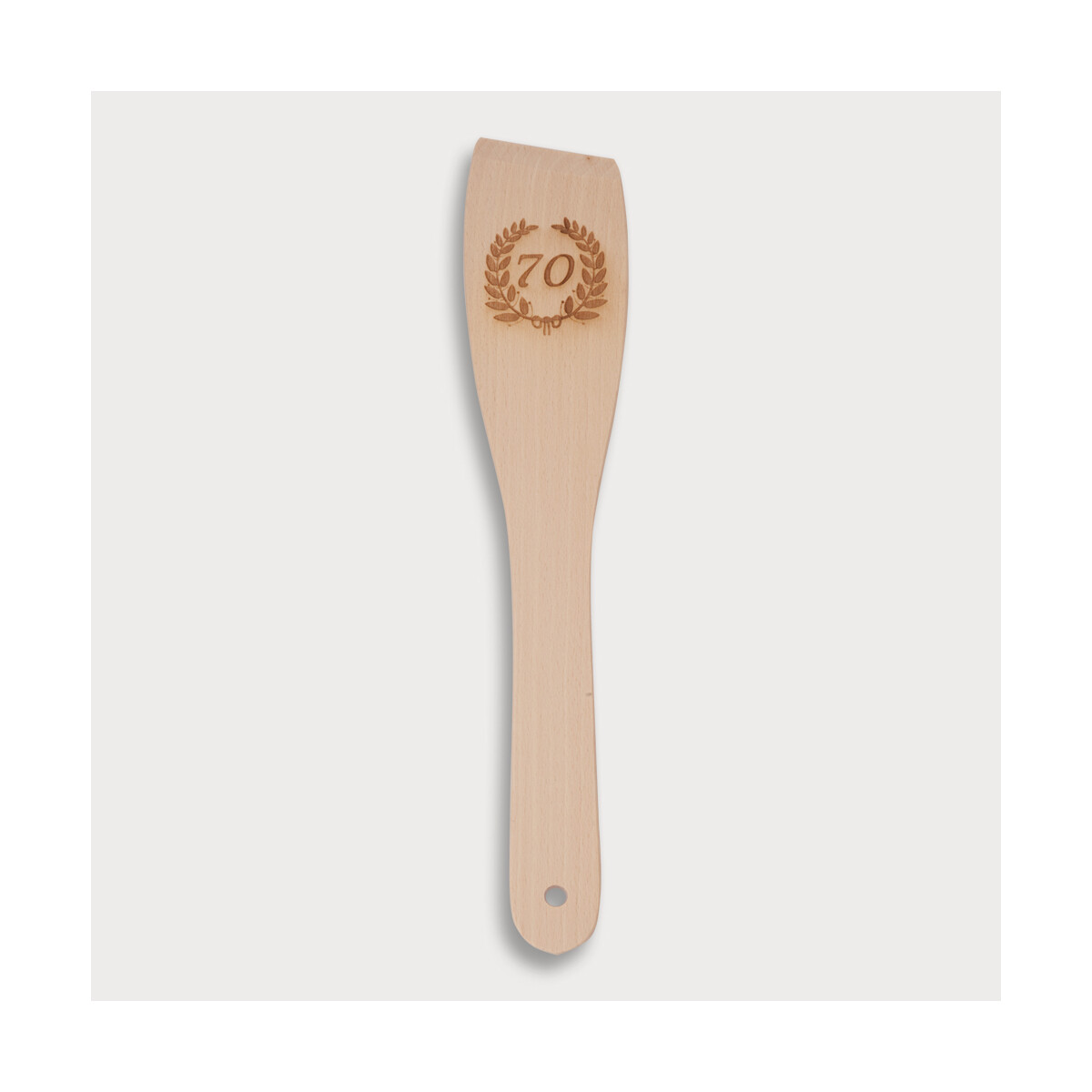 Pfannenwender, 70 Motiv, EU-Naturprodukt aus Buchenholz, keine Kratzer in der Pfanne, perfektes Wenden von Bratgut, hitzebeständiger Bratenwender, antibakterieller Teigschaber ohne Silikon, recycelbares Pfannenzubehör, 1 Stück Pfannenwender mit Zahlen Motiv 70, 30 cm, 30 x 5,5 x 0,4 cm 🌲 SCHONENDES MATERIAL: Die glatte Oberfläche des Buchenholzes und die abgerundeten Ecken des Bratenwenders verhindern ein Zerkratzen deiner beschichteten Pfannen, Im Gegensatz zu Bratwender aus Edelstahl können diese keine Kratzer an deiner hochwertigen Glas Rührschüssel hinterlassen, Bei unserem praktischen Bratenwender aus Holz ist dein beschichtetes Kochgeschirr nicht in Gefahr 🌲 HITZEFESTER WENDER: Unser breiter Schaber aus Holz ist hitzebeständig und kann deshalb auch für den Grill, Wok oder am Ofen in der Küche verwendet werden, ohne dass der Pfannenwender schmilzt, Bei einem Kunststoff oder Silikon Teigschaber besteht die Gefahr, dass deine Küchenutensilien bei großer Hitze schmelzen 🌲 PERFEKT WENDEN: Das Wenden von Fleisch, Fisch oder Teig in einer Schüssel funktioniert am besten mit unserem Holz Pfannenwender, ohne Kunststoff, Dank dem funktionalen Küchenhelfer und dem ergonomischen Holzgriff bzw, Stiel lassen sich sämtliche Speisen leicht und perfekt wenden, 🌲 TOLLES ZAHLEN DESIGN: Mit dem gravierten und flexiblen Schaber aus Holz machst du jedem Profi-oder Hobbykoch eine wahre Freude, Die persönliche Gravur der Teigkarte symbolisiert den runden Geburtstag des Beschenkten und bringt zusätzlich pure Natur in seine Küche, 🌲 ANTIBAKTERIELL: Das naturbelassene Buchenholz des Bratenwenders garantiert gesundes Kochen durch antibakterielle und antiallergische Eigenschaften, So bist du mit unserem umweltfreundlichen Pfannenheber beim Kochen, Grillen und Kuchen Backen sicher vor Bakterien im Kunststoff geschützt Unser stylischer Bratenwender-ein Must-have für jede Küche Wenn die heiße Grillkohle beim BBQ lodert und das lecker marinierte Steak oder Tofu darauf liegt, ist die Vorfreude schon groß auf gutes Essen, Aber auch beim Backen einer süßen Torte, wo vorher der feste Teig bearbeitet werden muss, ist unser Spachtel der perfekte Küchenhelfer, Mit dem robusten Teigschaber lässt sich jeder Teig am schnellsten aus der Schüssel heben oder als Bratenwender köstlicher Braten in der Pfanne wenden, Mit unserem Holz Teigschaber bzw, Bratenwender aus guter Qualität, besitzt du ein Küchengerät und in unserem Shop findest du noch weitere Zahlenmotive,