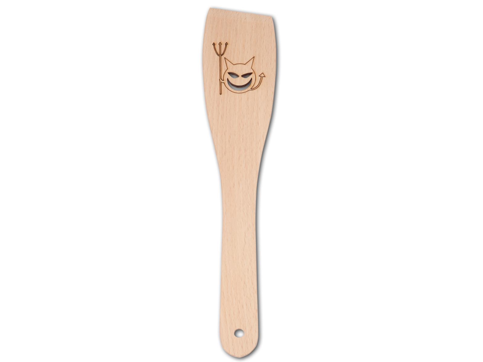 Produktinformationen "Pfannenwender, mit Motiv Teufelchen Gesicht, aus Holz 30 cm"