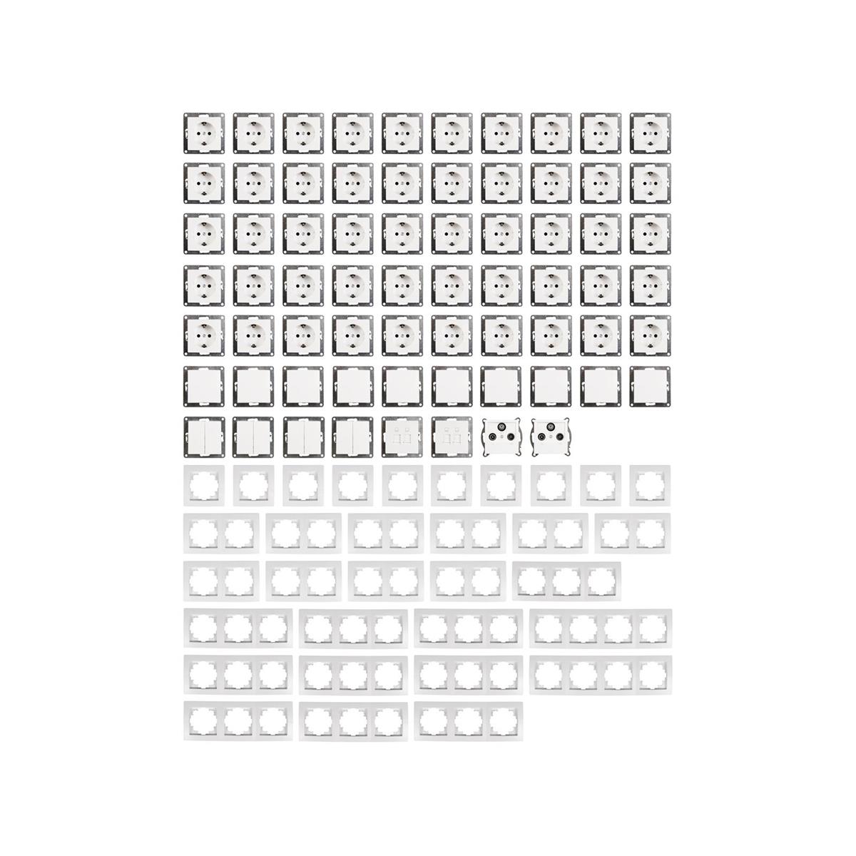 Großes 100-teiliges flexibles Schalterprogramm Set mit Steckdosen + Rahmen bestehend aus: