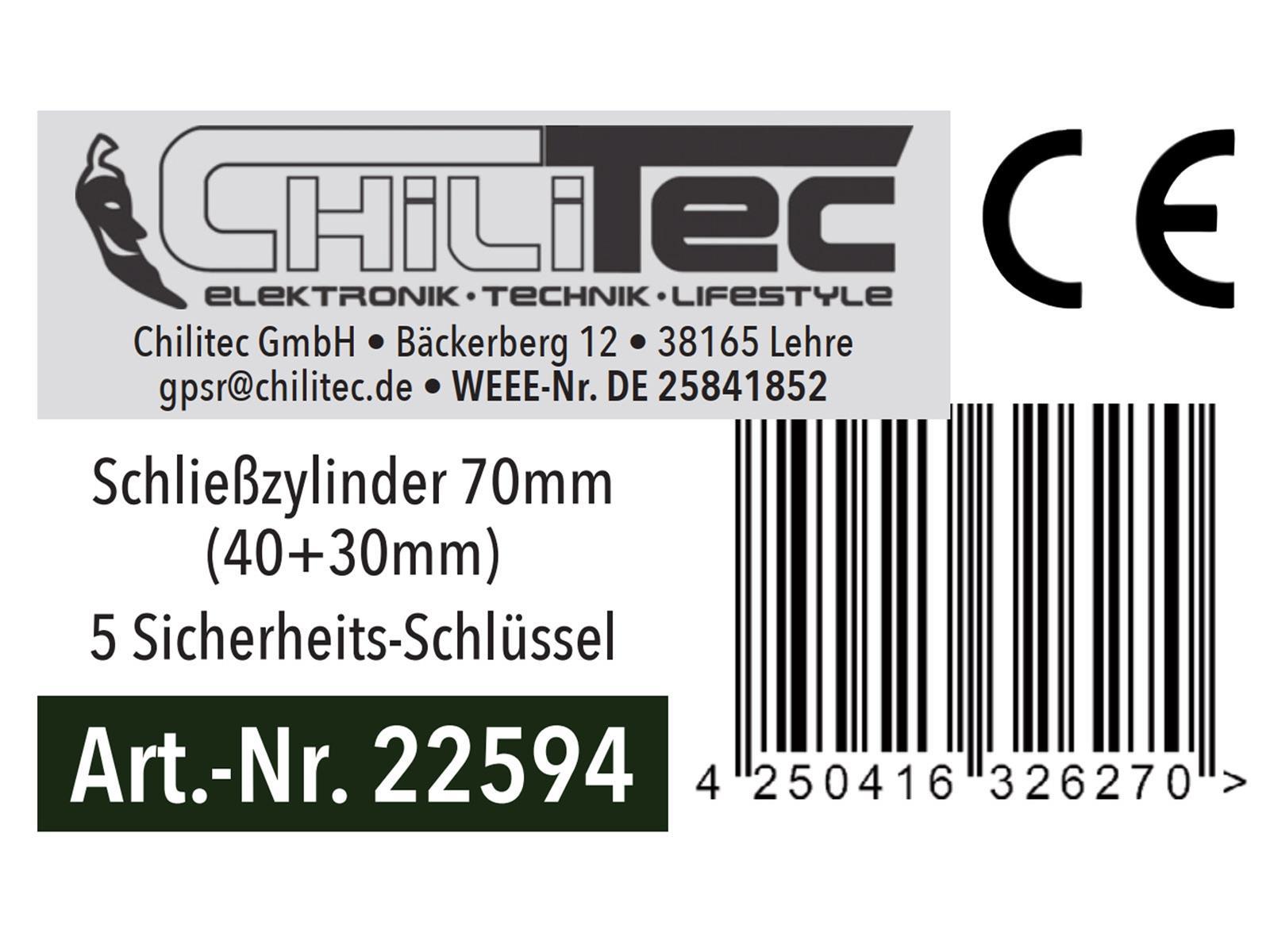 Produktinformationen "Schließzylinder 70mm (40+30mm)Profil-Zylinder, 5 Sicherheits-Schlüssel"