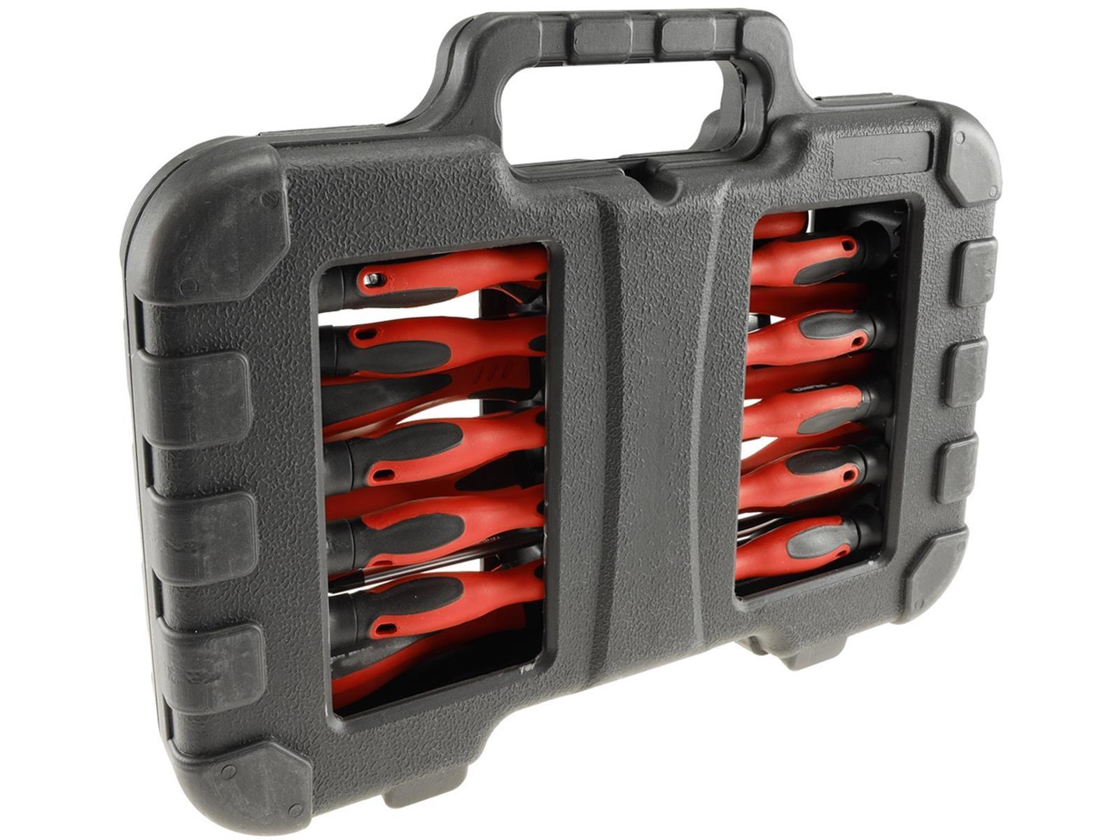 Der All you need Heimwerker Koffer mit 58 Teilen. Robuste Schraubendreher mit gummierten Kraftgriffen bieten maximalen Halt bei der Arbeit. Gehärteter Chrome-Vanadium Werkzeugstahl für langfristige Haltbarkeit. Das Set beinhaltet in Summe 18 Schraubendreher in einer für Sie ausgesuchten Konfiguration, wie in Haushalten meist gebraucht. Lieferung in praktischem Transportkoffer.