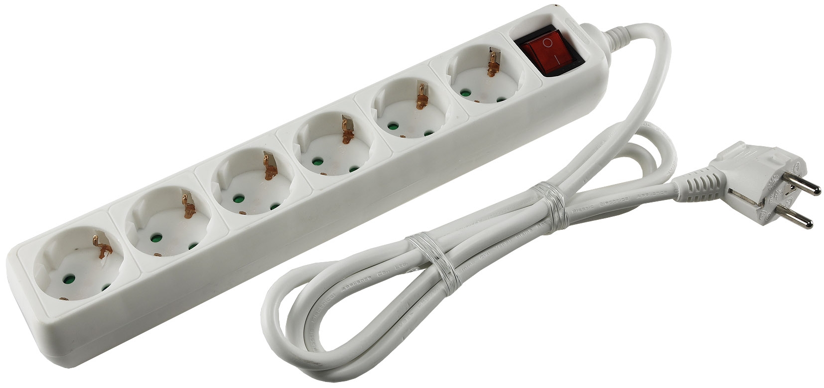 Produktinformationen "Schutzkontakt-Steckdosenleiste 6-fach3600W, 1,4mKabel, mit Schalter, weiß"