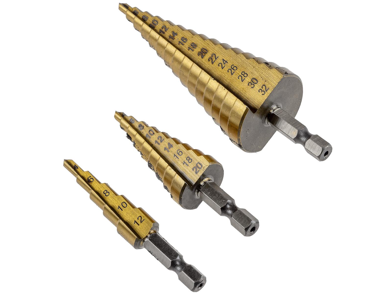 Produktinformationen "Stufenbohrersatz "Pro-XL" 3-teilig4-12mm / 4-20mm/ 4-32mm"