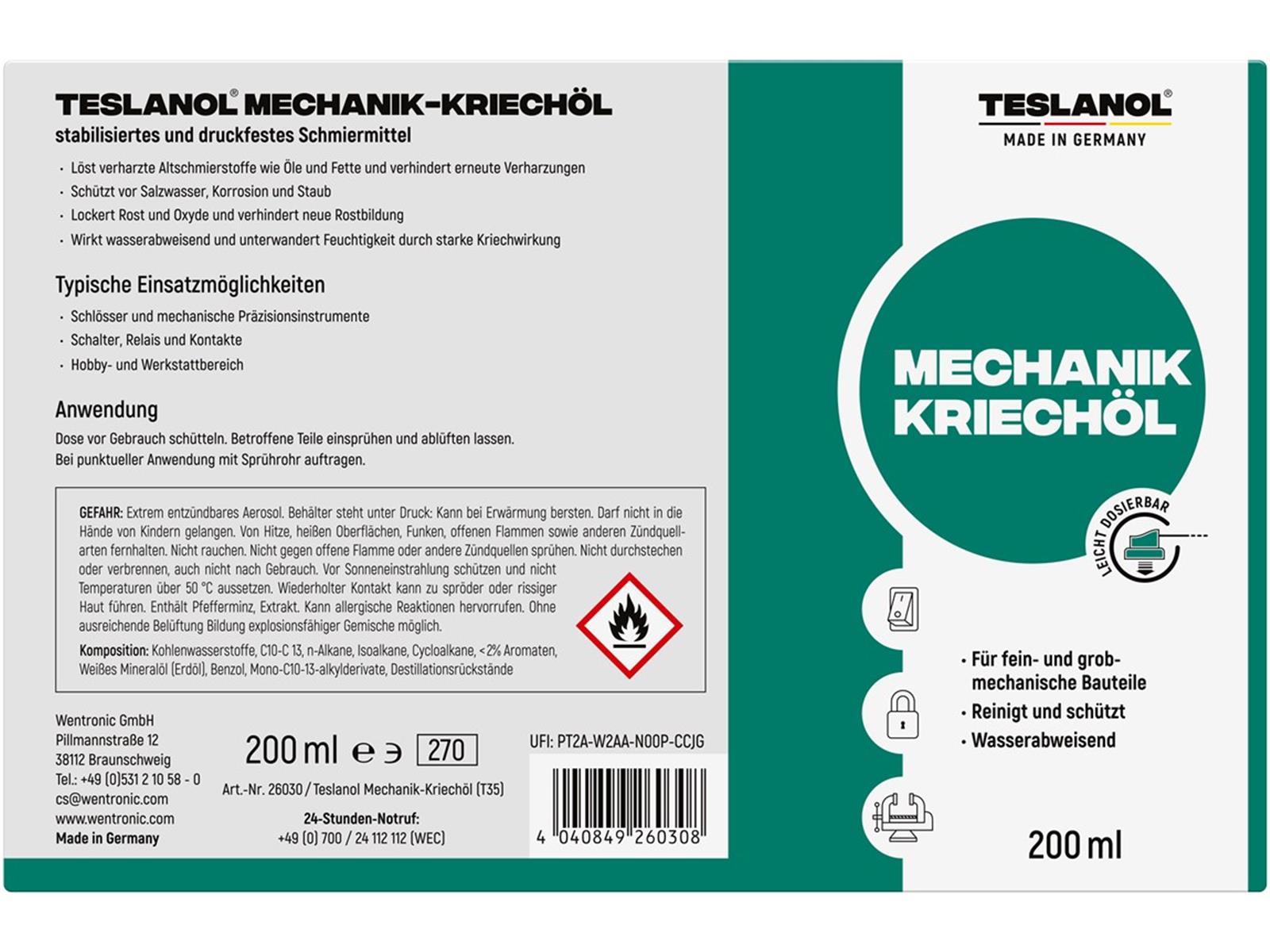 Produktinformationen "TESLANOL-Spray Mechaniker-Kriechöl 200ml-Dose"