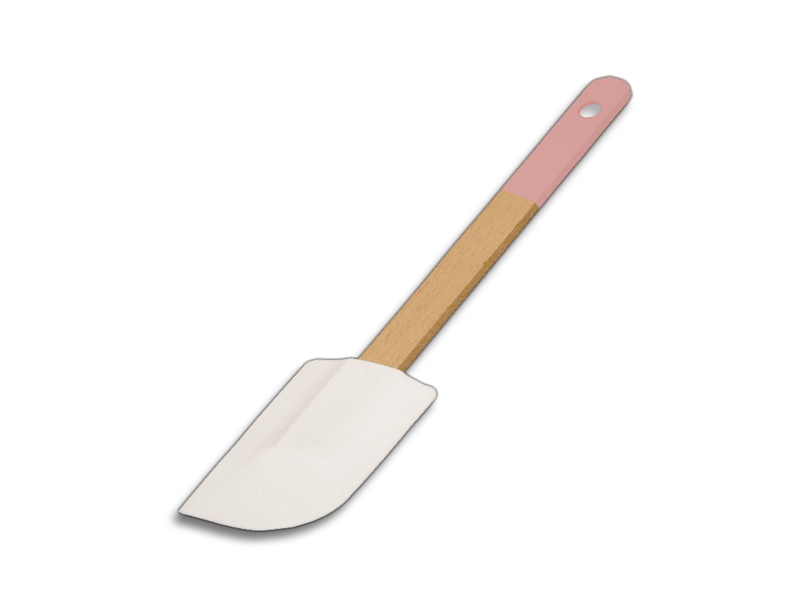 Produktinformationen "Teigschaber, breit, mit farbigem Griff, hellrosa, aus Holz 28 cm"