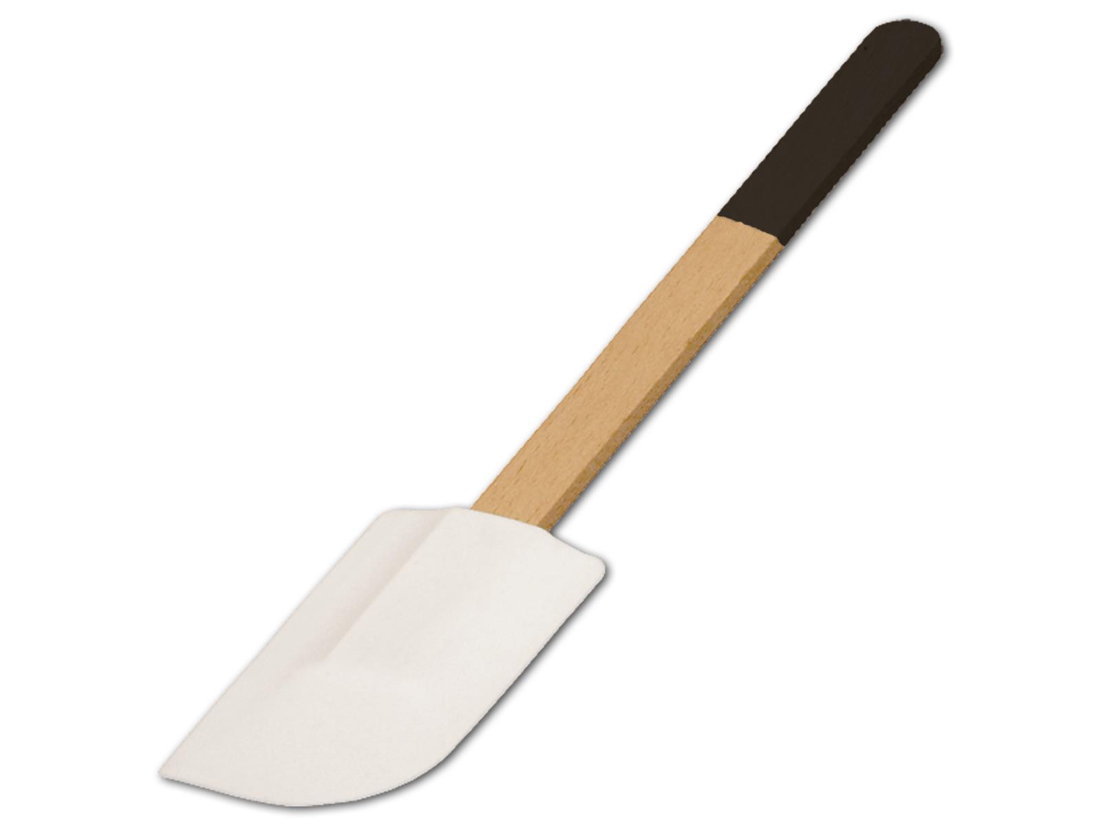 Produktinformationen "Teigschaber, breit, mit farbigem Griff, schwarz, aus Holz 28 cm"