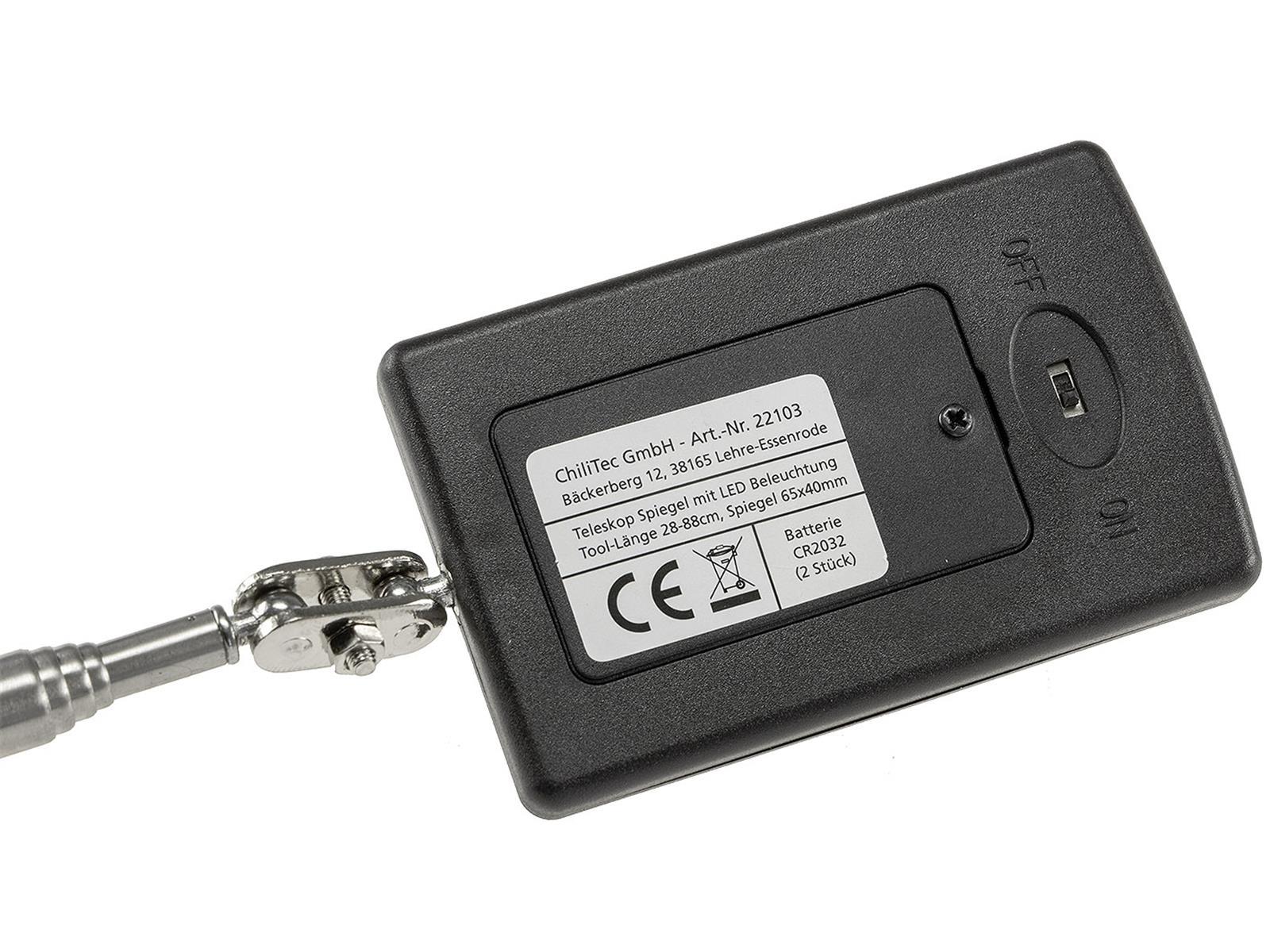 Produktinformationen "Teleskop Spiegel mit LED BeleuchtungGesamtlänge 28-88cm, Spiegel 65x40mm"