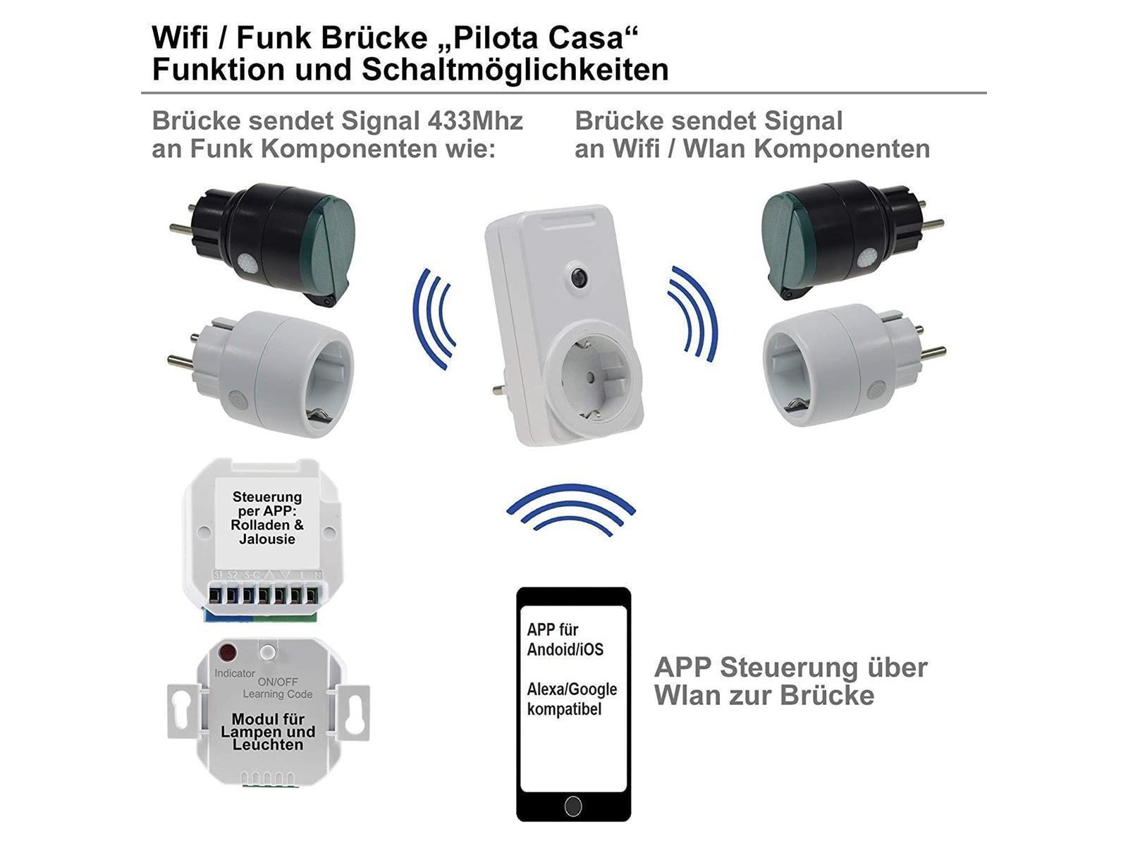 - Wifi-Steckdose einfach steuerbar per Smartphone App iOS + Android und Amazon Alexa Echo, Google Home per Sprachsteuerung