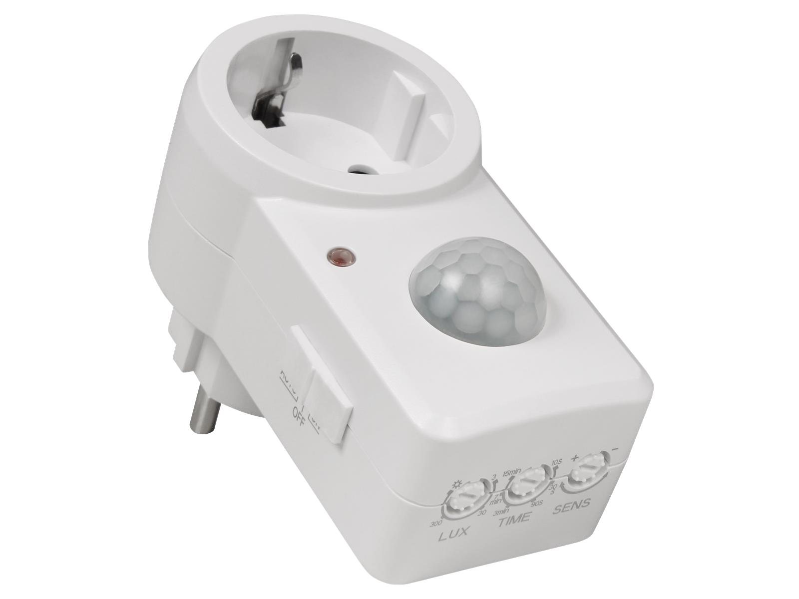 Maximallast: 1-1.200 Watt, max. 1.200 W (ohmsche Last), max. 800 W (Glühlampen), einstellbare Schaltdauer: 10 Sek. - 7 Min., Dämmerungs-Empfindlichtkeit: 3-2.000 Lux, Erfassungswinkel: 120°, Reichweite: 2-9m, 220-240V/AC