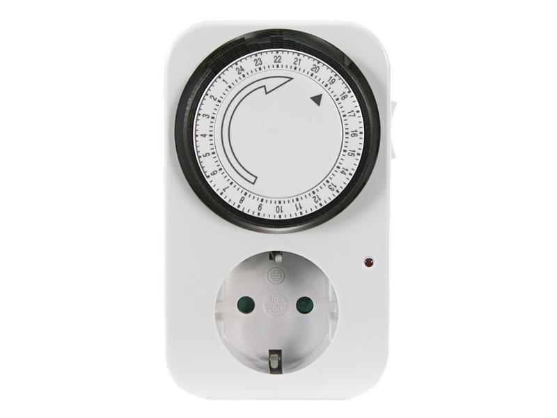 Mechanikuhr mit unkomplizierter Bedienung für alle Arten von Verbrauchern wie Beleuchtung oder Ventilatoren. Einstellung über Kipphebel.